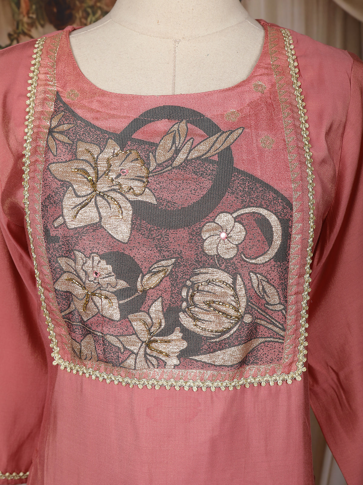 Dusty Rose Pink Floral Embroidered Design Cotton Straight Cut Salwar Suit