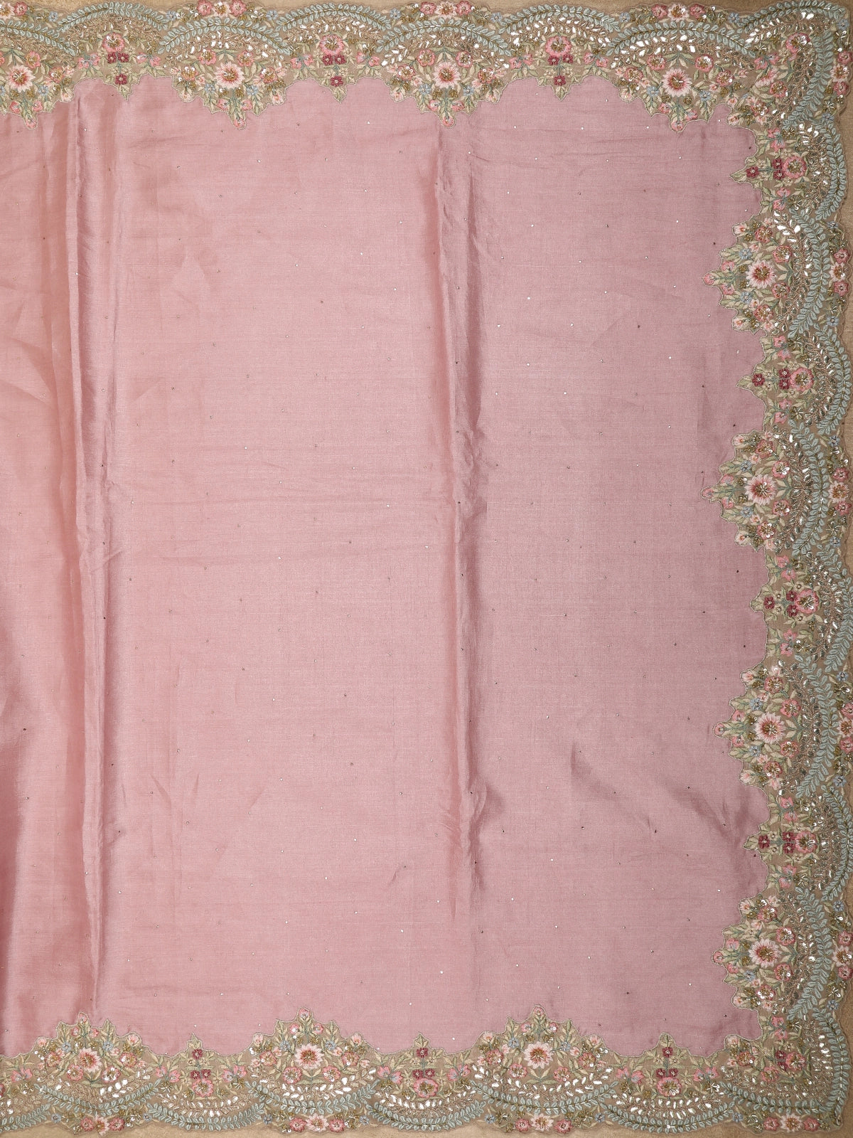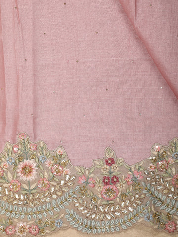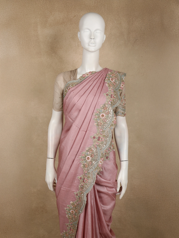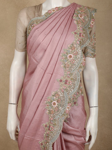 Dusty Rose Pink Floral Sequins and Beads Embroidered Design Pure Tussar Silk Designer Saree
