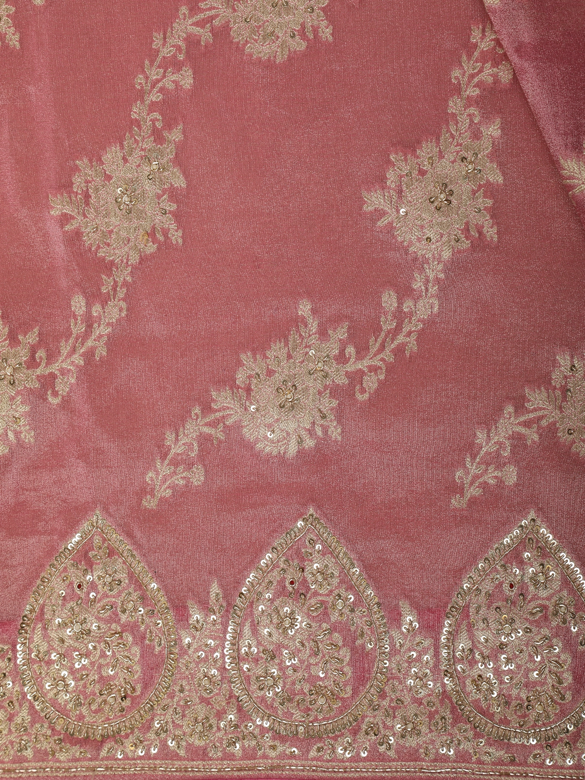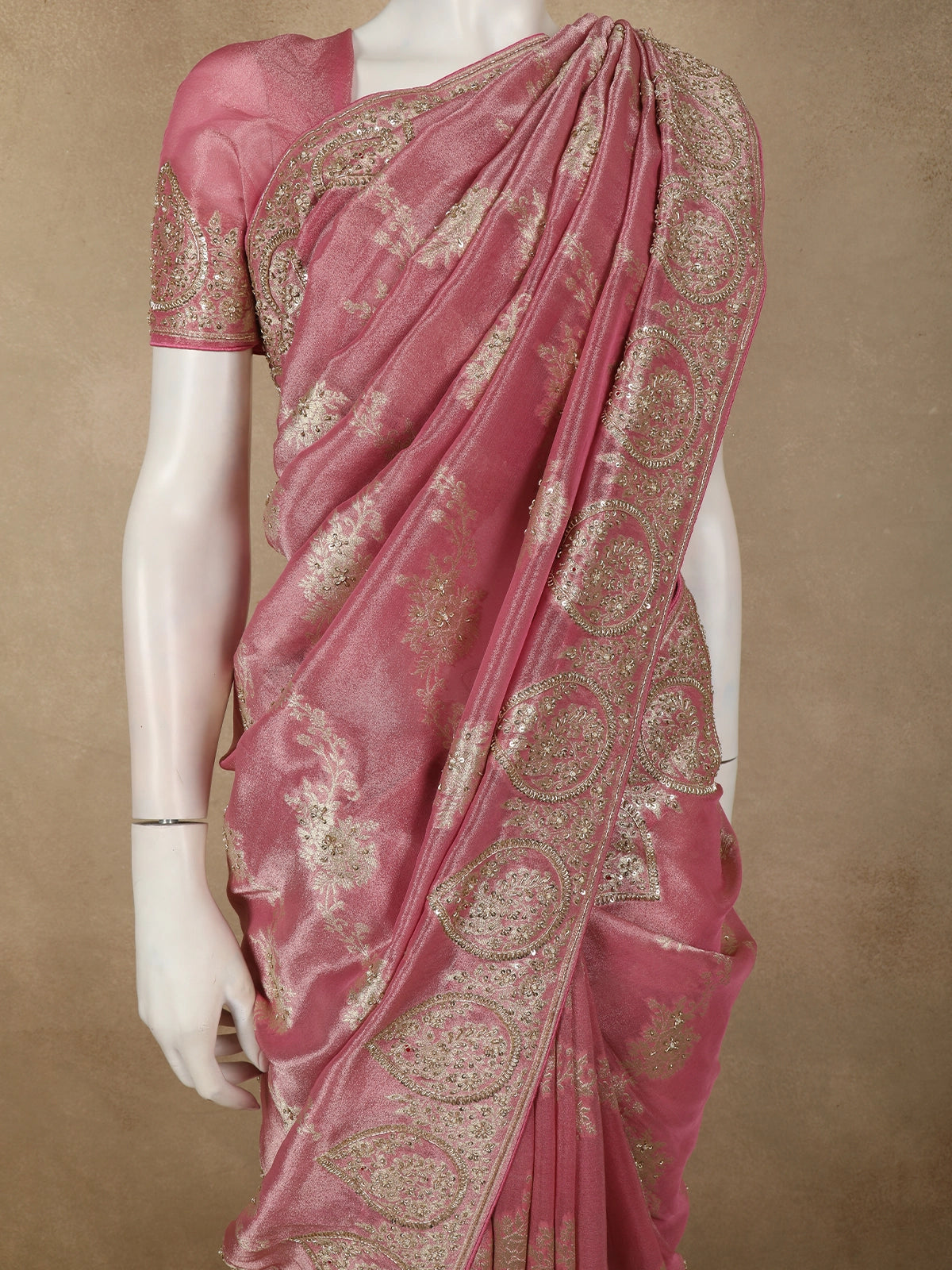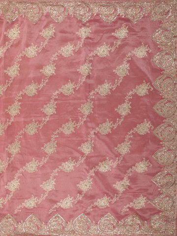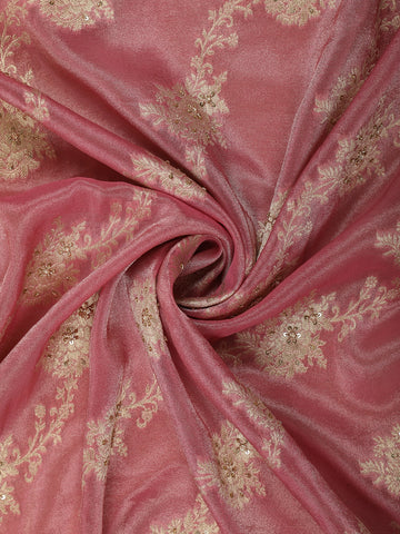 Dusty Rose Pink Floral Sequins and Beads Embroidered Design Pure Banarasi Designer Saree