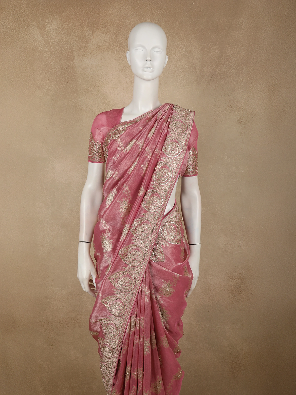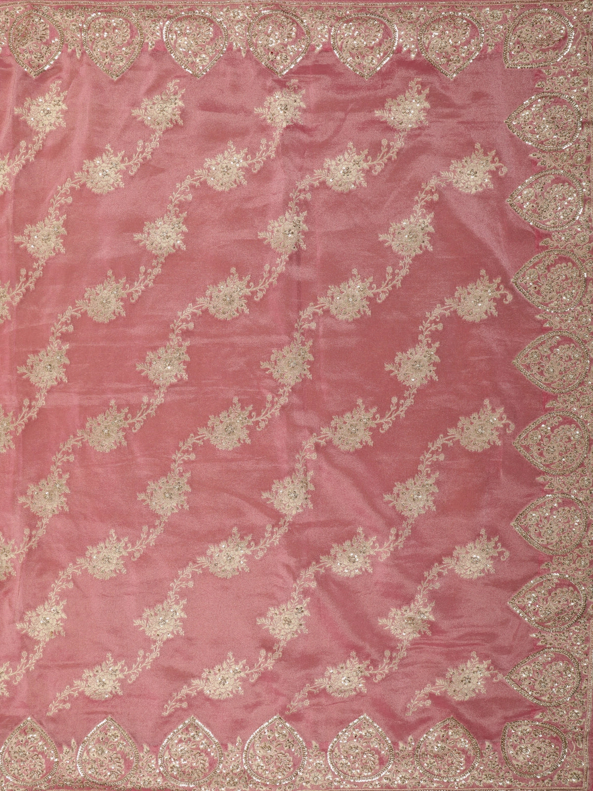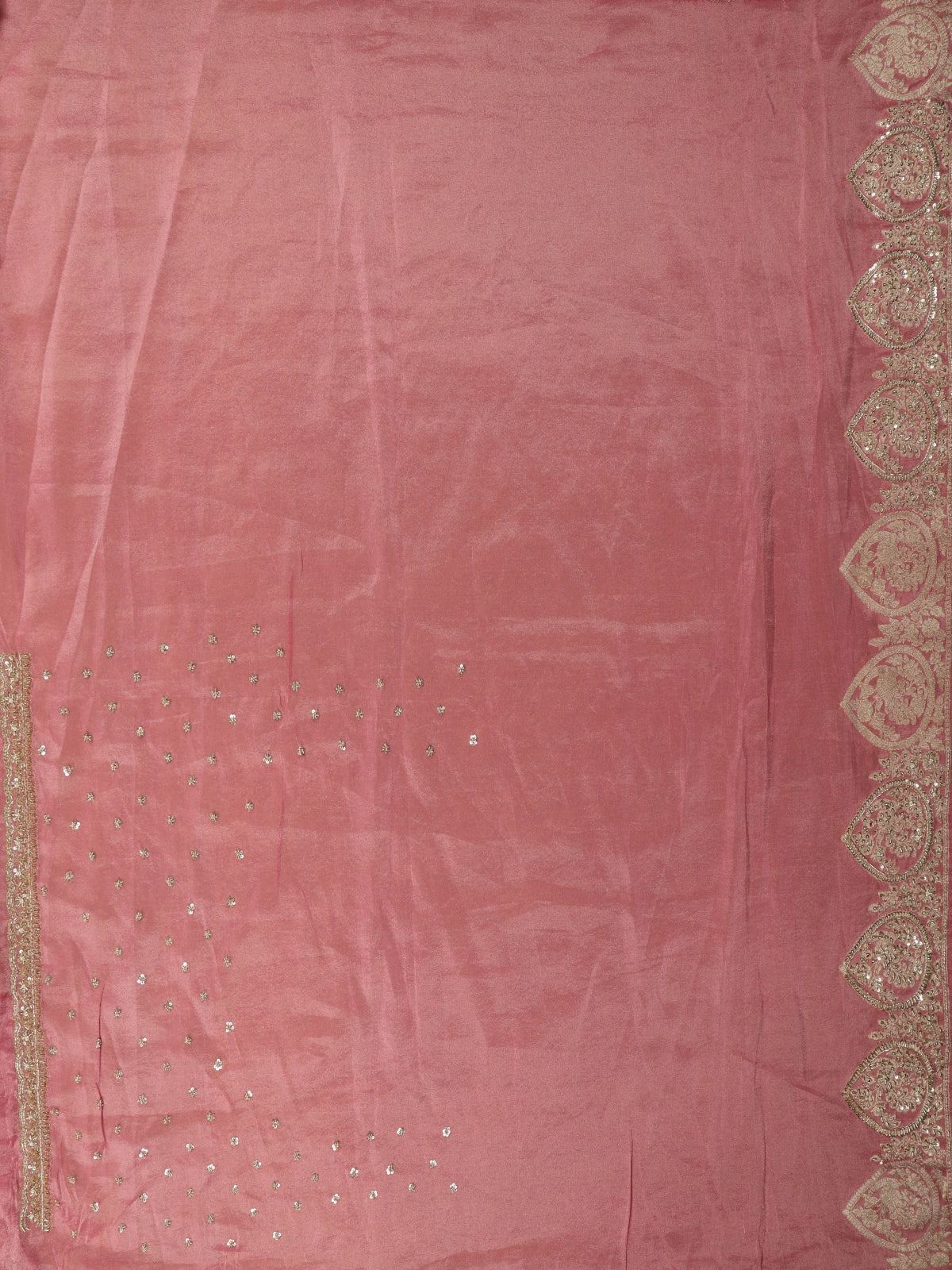 Dusty Rose Pink Floral Sequins and Beads Embroidered Design Pure Banarasi Designer Saree