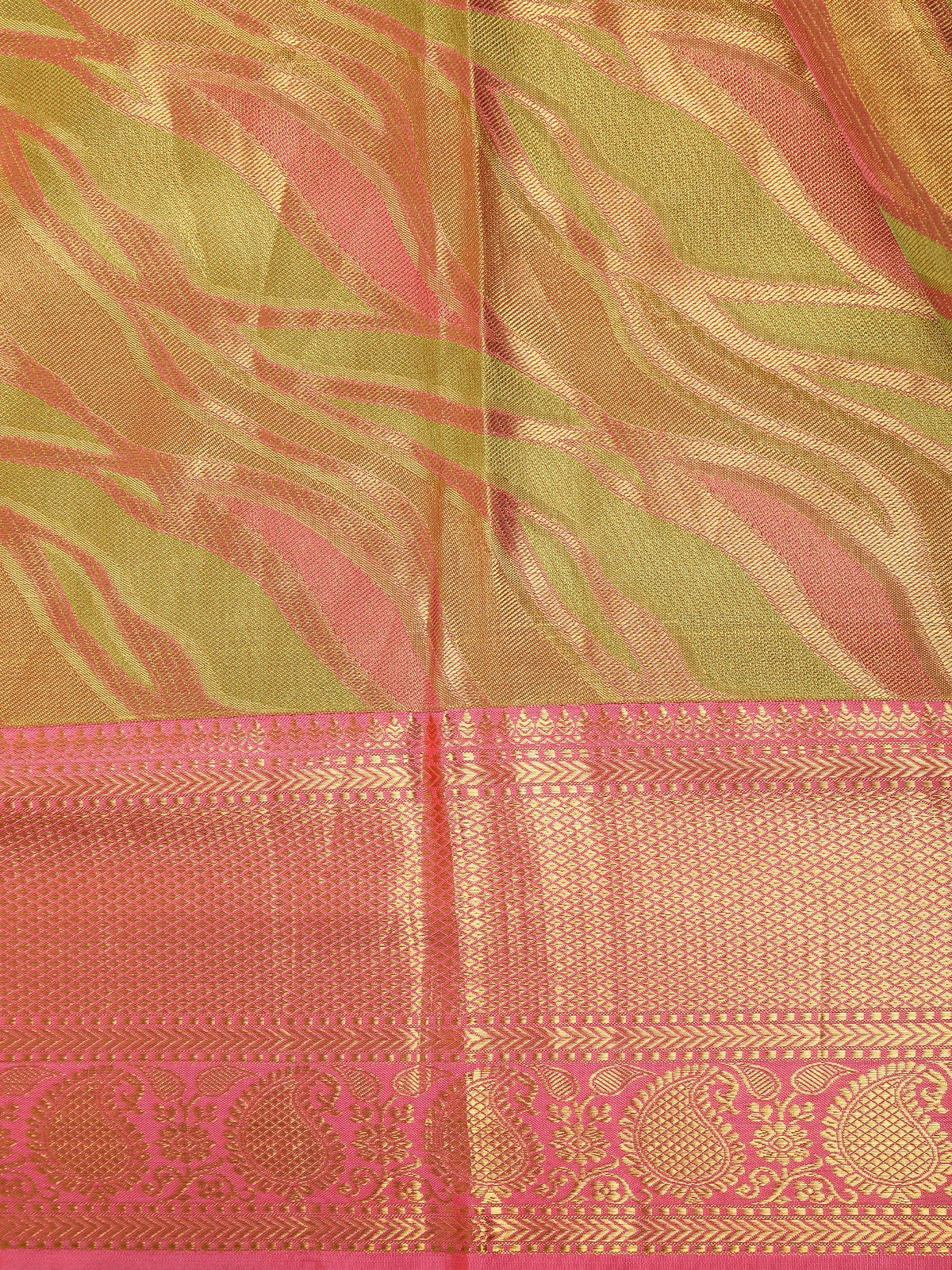 Gold and Pink Abstract Woven Design Pure Kanchipuram Silk Saree with Contrast Pink Border