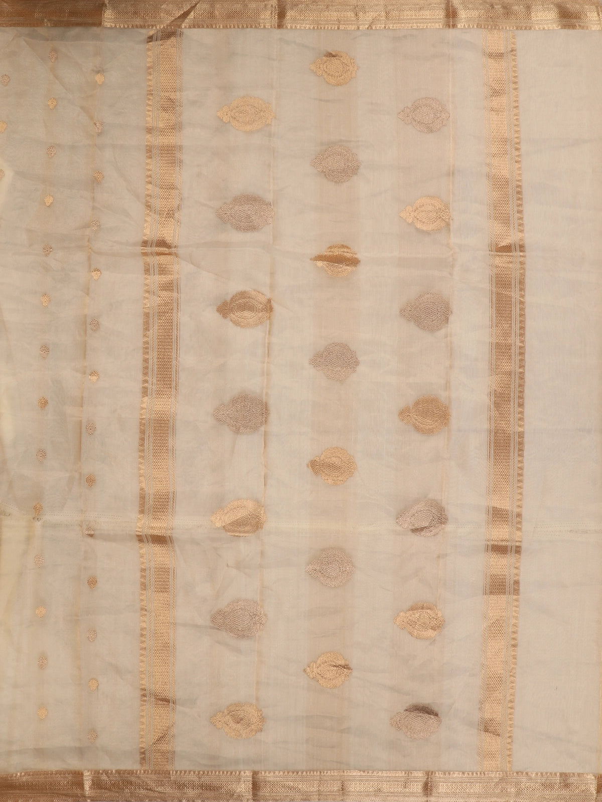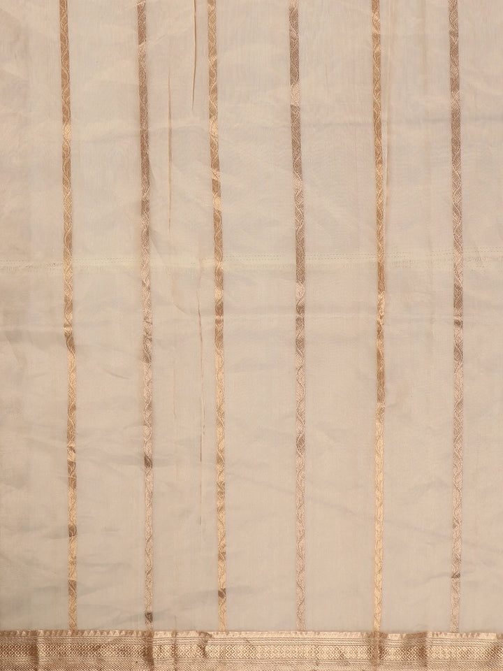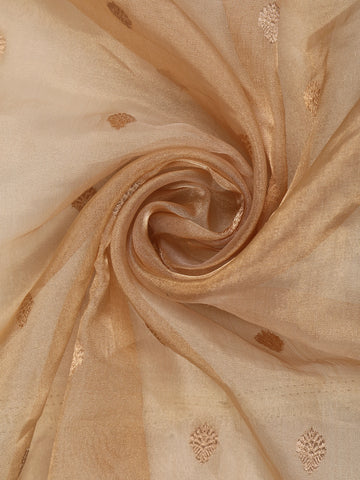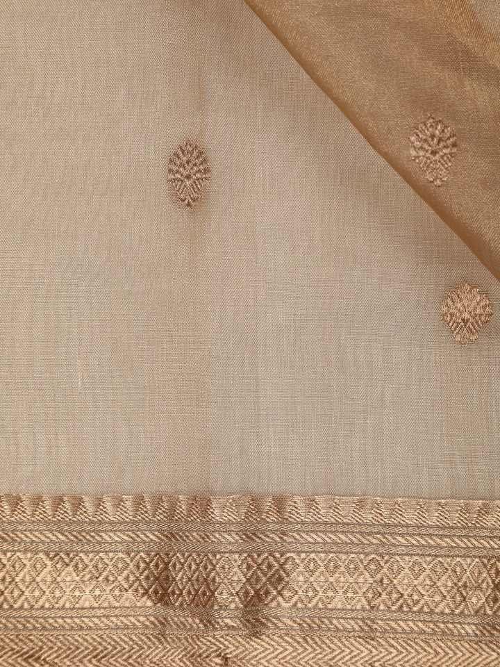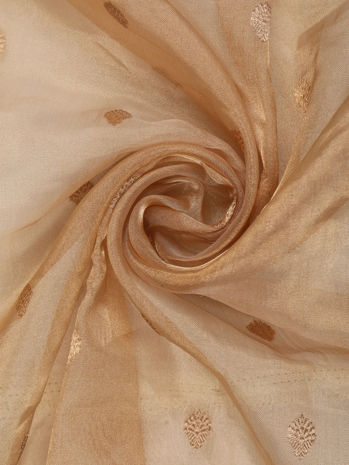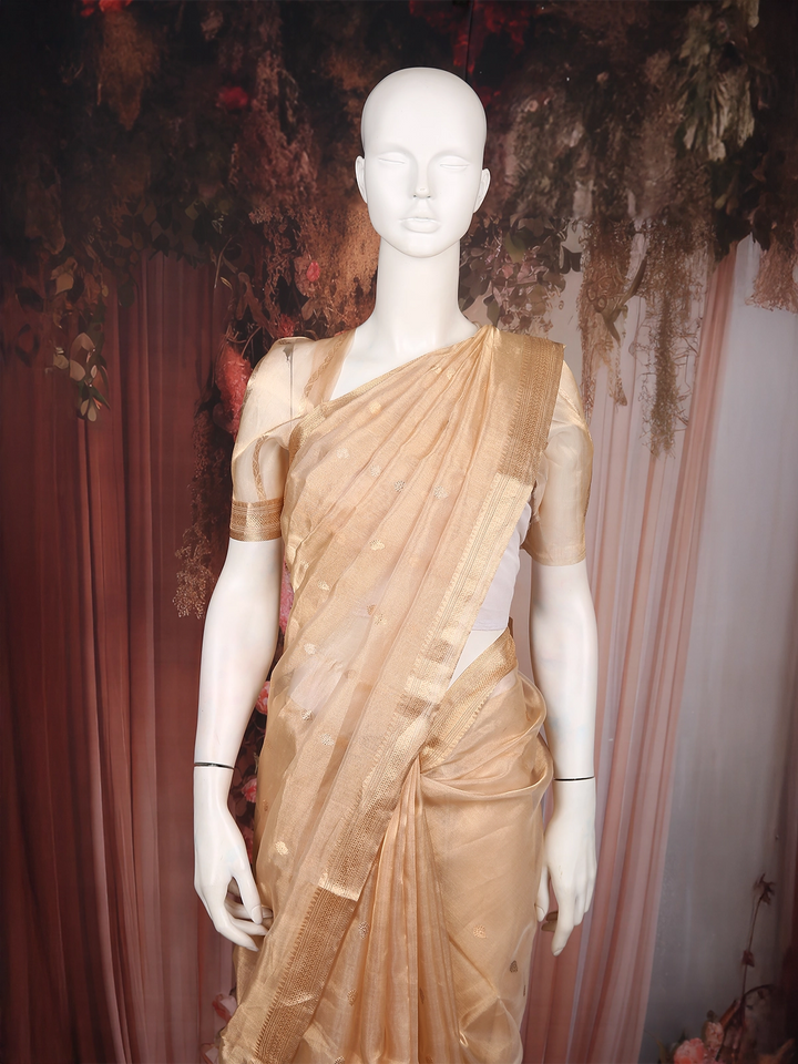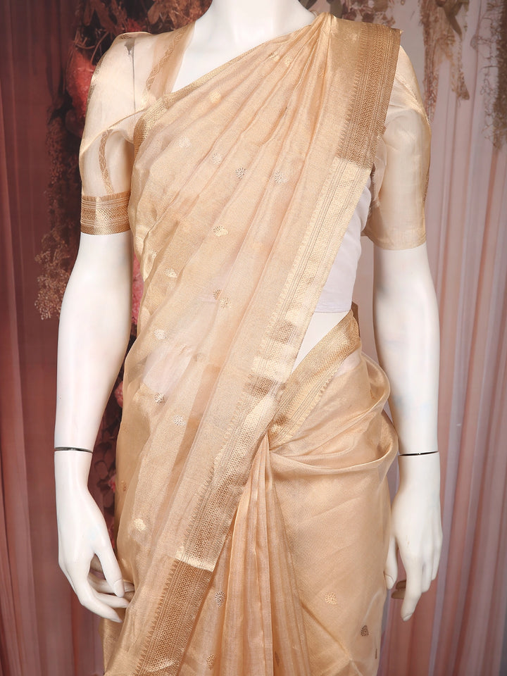 Gold Beige Butta Woven Design Tissue Saree with Gold Zari Border