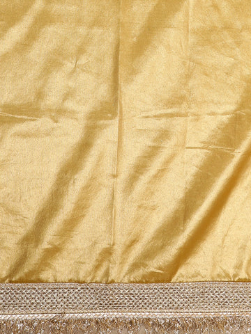Gold Floral Butta Design Tissue Saree with Designer Lace Border