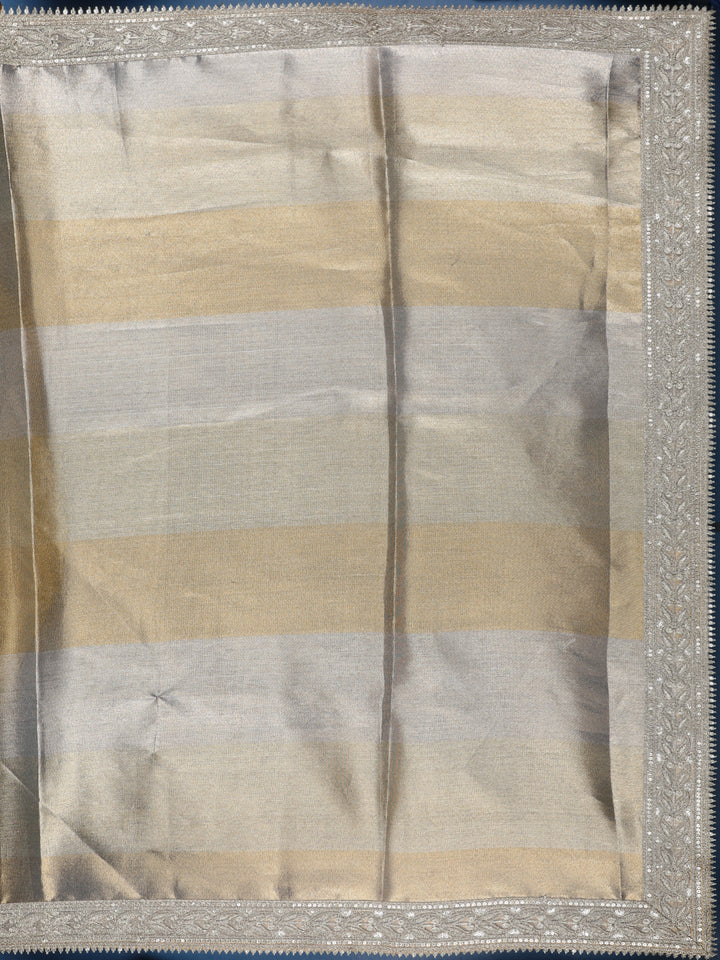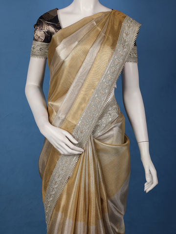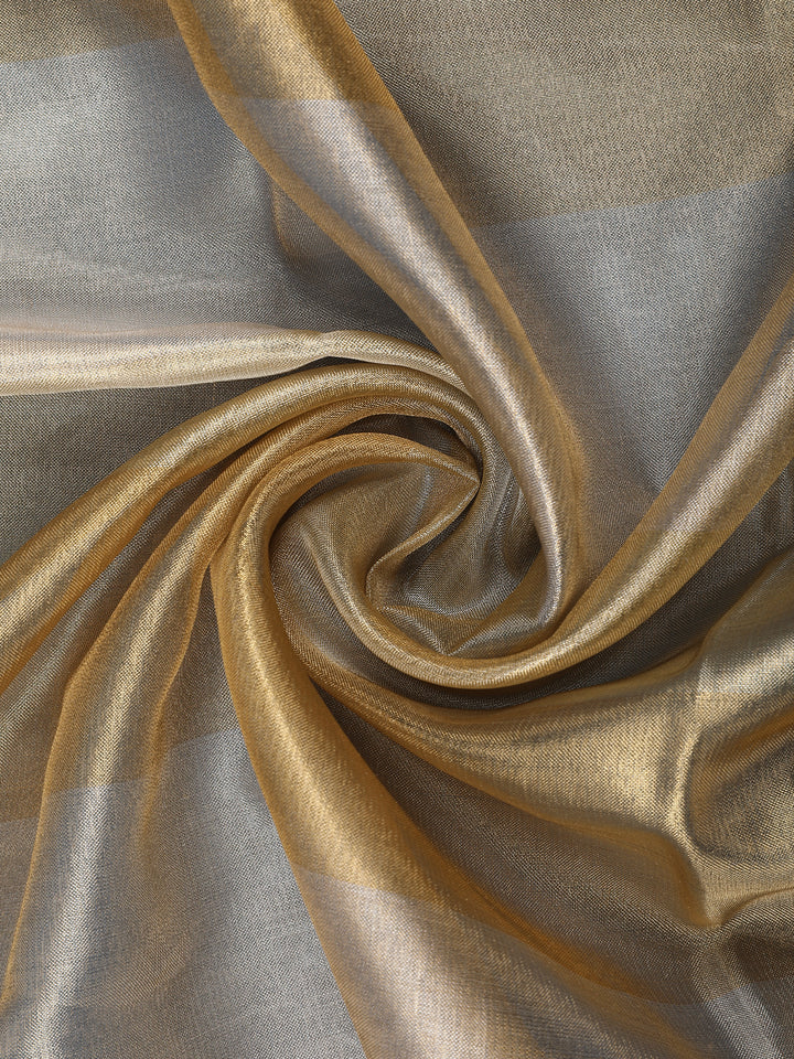 Golden Beige Striped Design Tissue Saree
