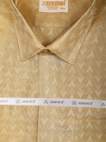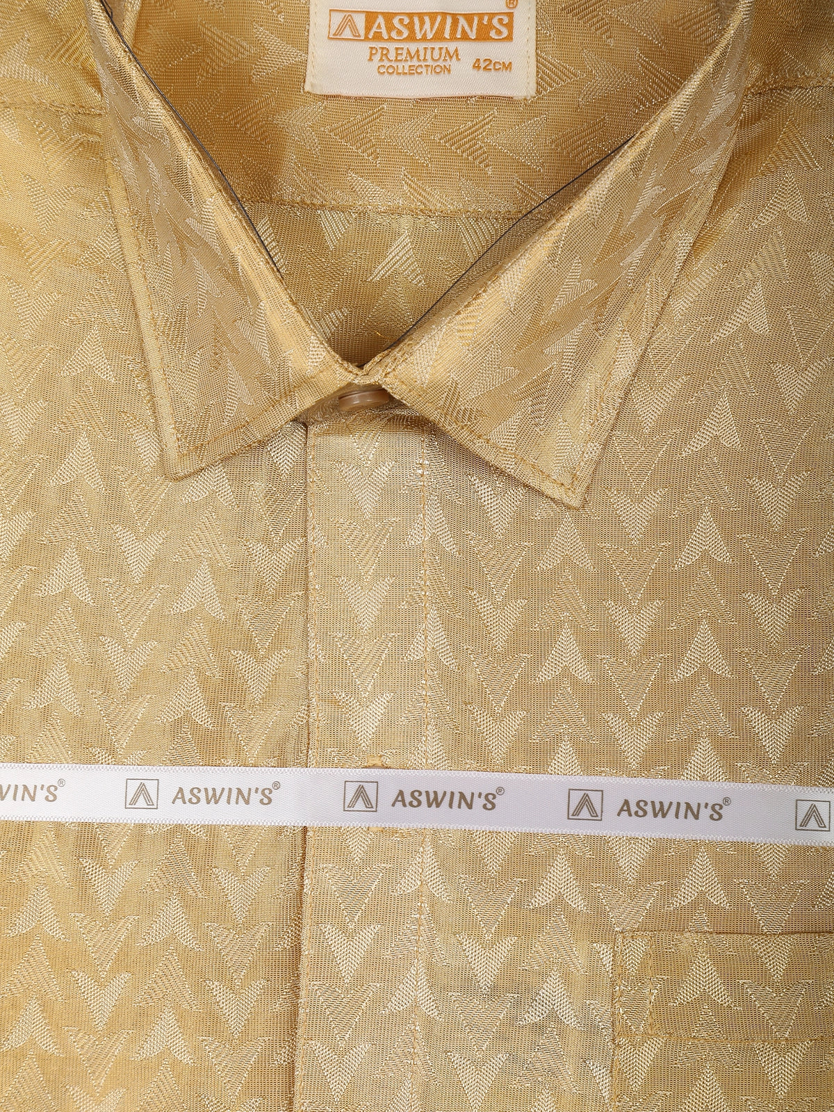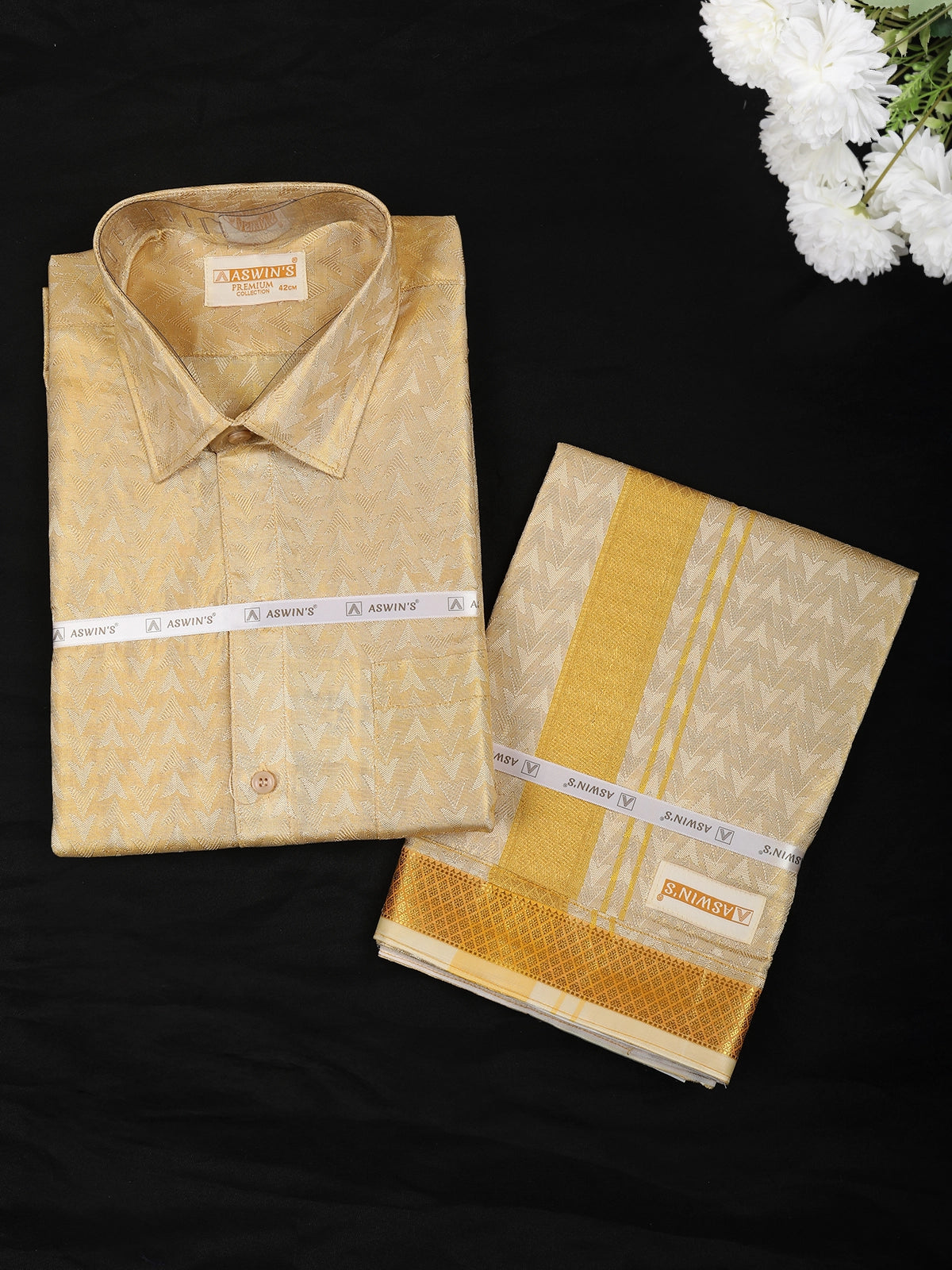 Golden Beige Abstract Woven Design Shirt with Matching Dhoti Set