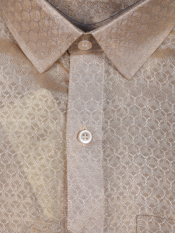 Golden Beige Woven Design Semi Silk Full-Sleeve Shirt With Matching Dhoti Set
