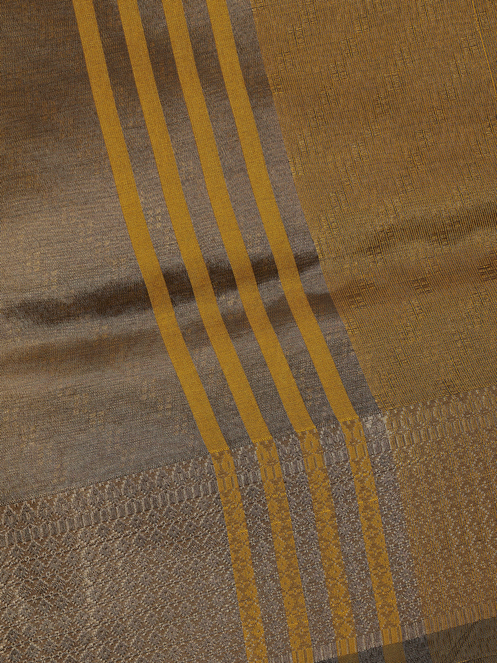 Exude understated grace with this Golden Brown Striped Design Cotton Blend Saree, a perfect fusion of traditional aesthetics and modern comfort. The saree showcases finely woven stripes that add a refined texture to its lustrous cotton-blend fabric. Designed with a matching brown pallu and blouse, it creates a seamless, elegant look ideal for festive occasions or ethnic gatherings. The woven border lends a graceful finish, while the lightweight fabric ensures all-day comfort with a sophisticated drape.