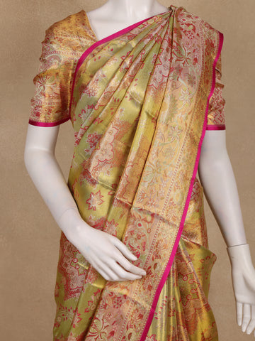 Golden Green Floral Woven Design Pure Kanchipuram Silk Saree