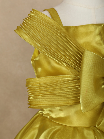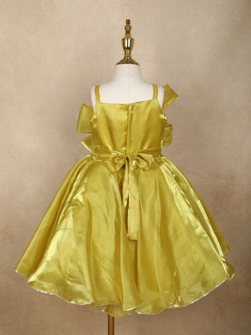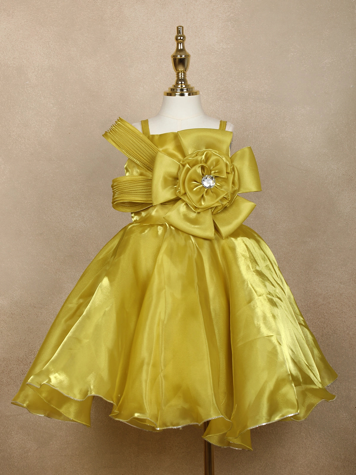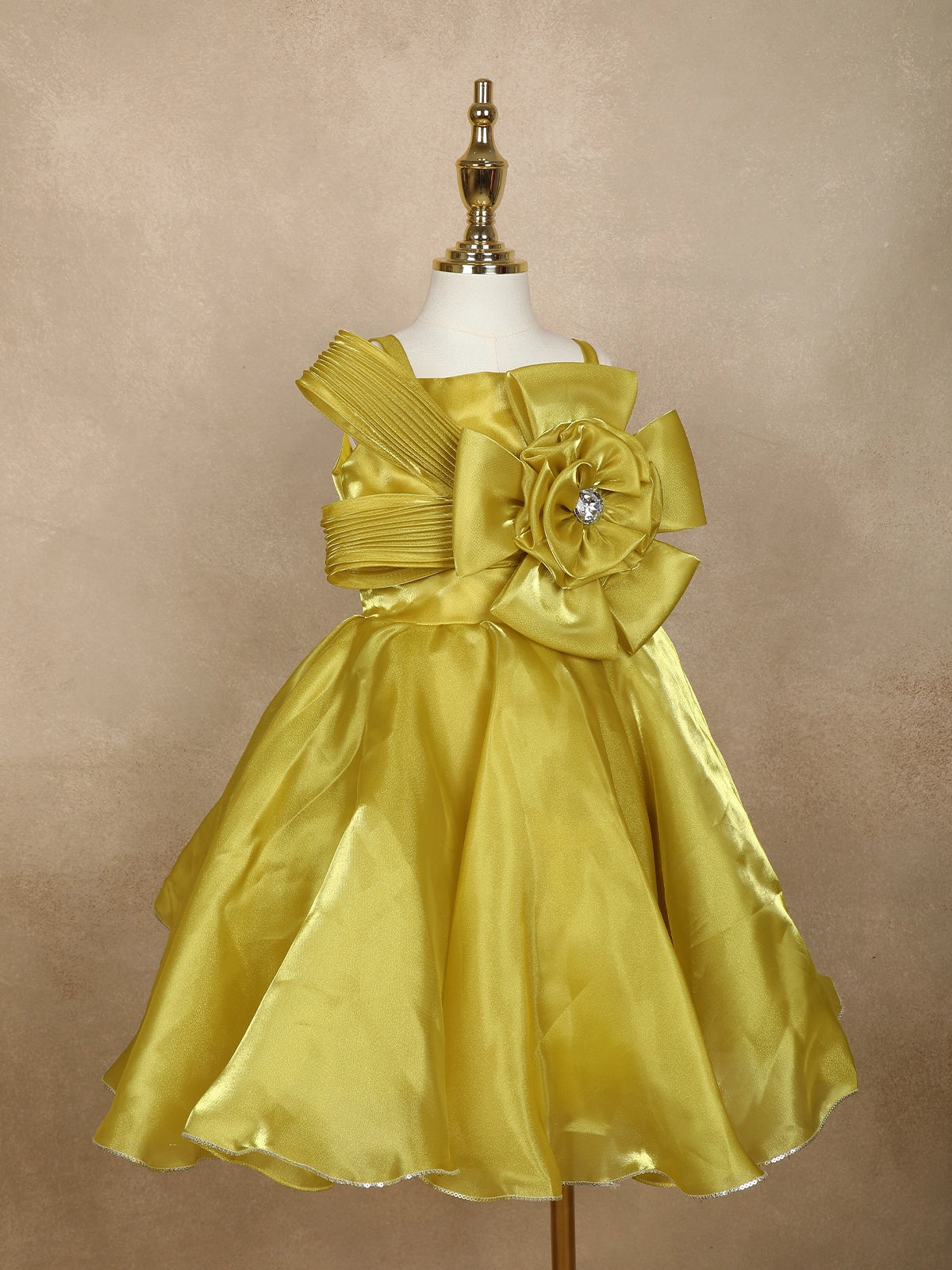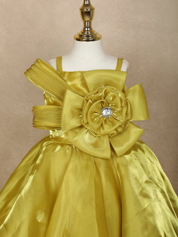 Golden Satin Oversized 3D Flower Party Frock for Girls