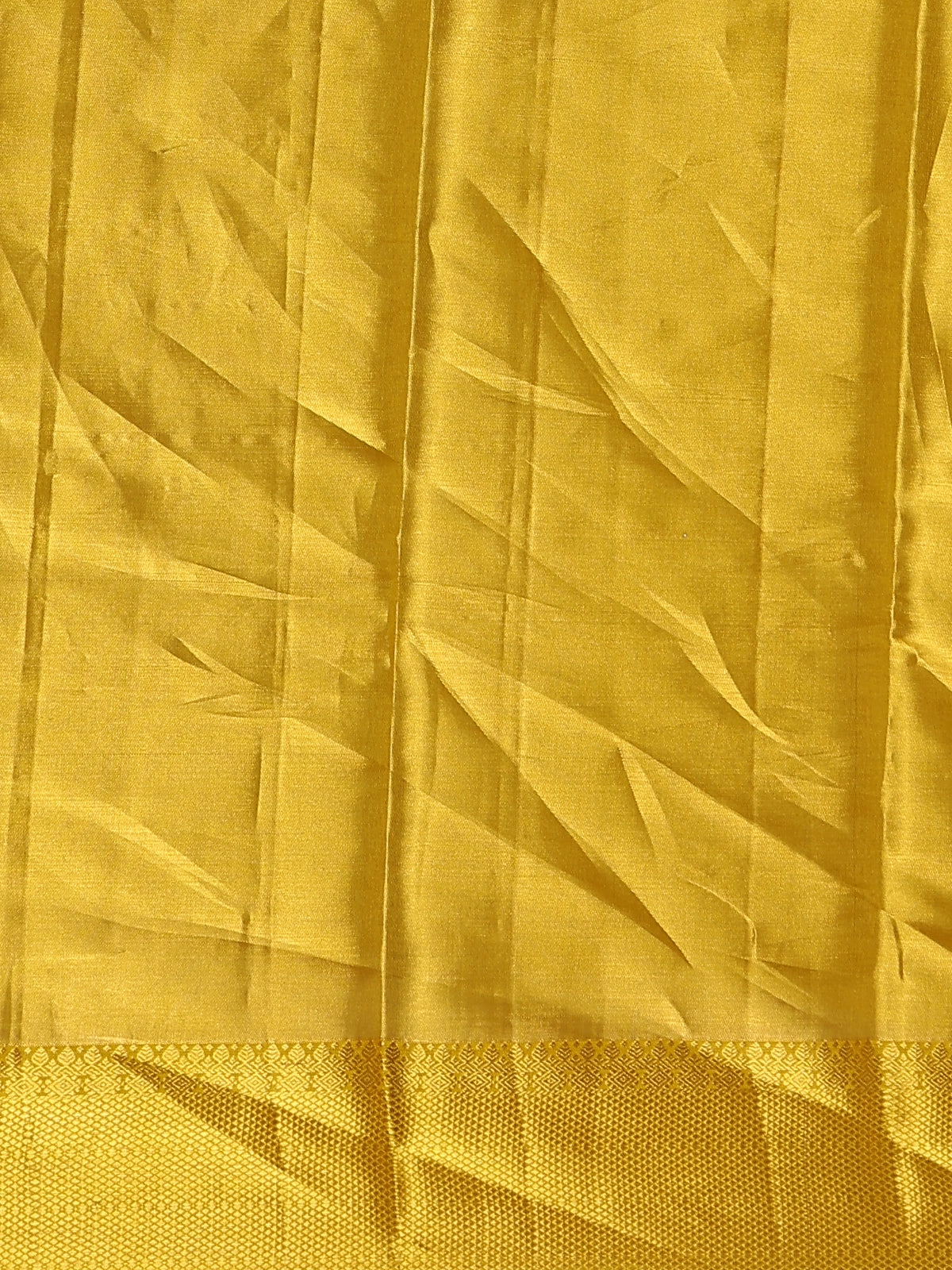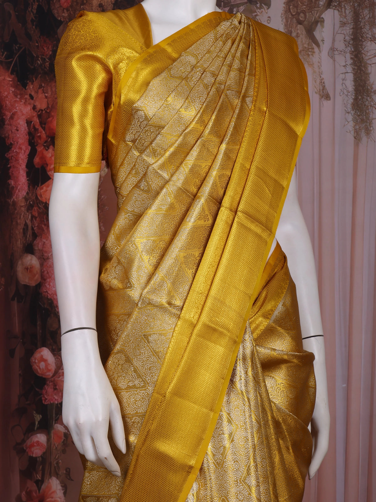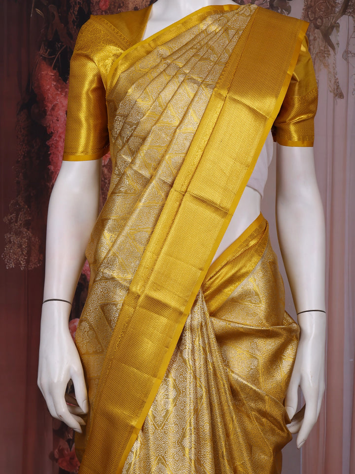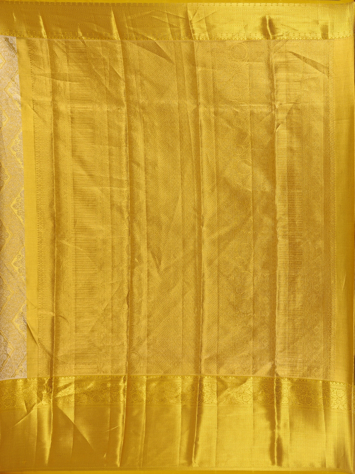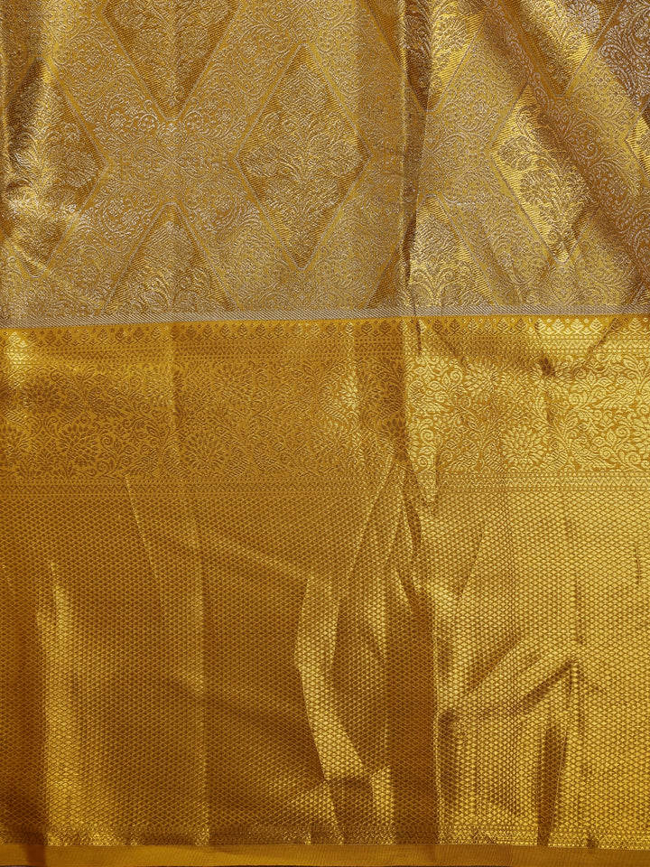 Golden Yellow Diamond Motif Woven Kanchipuram Tissue Silk Saree