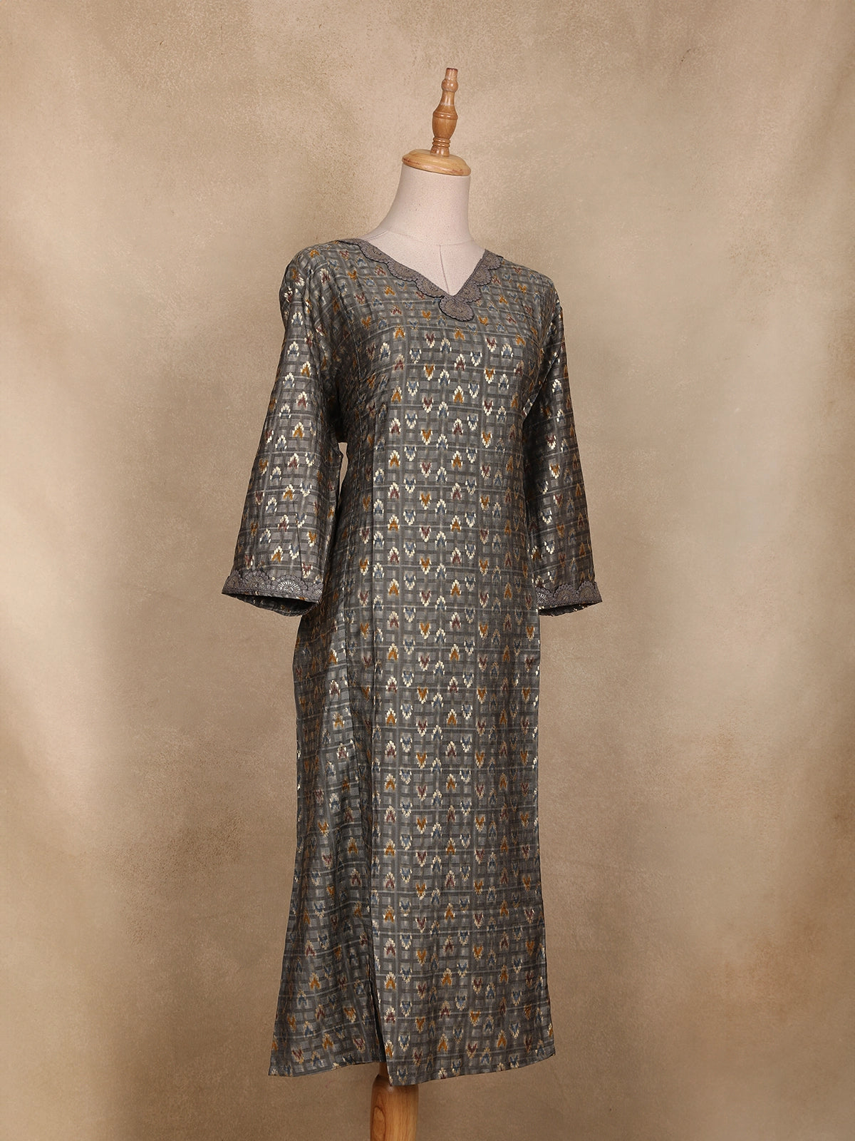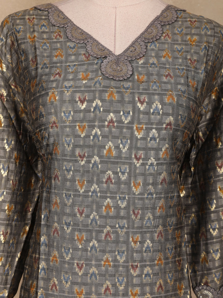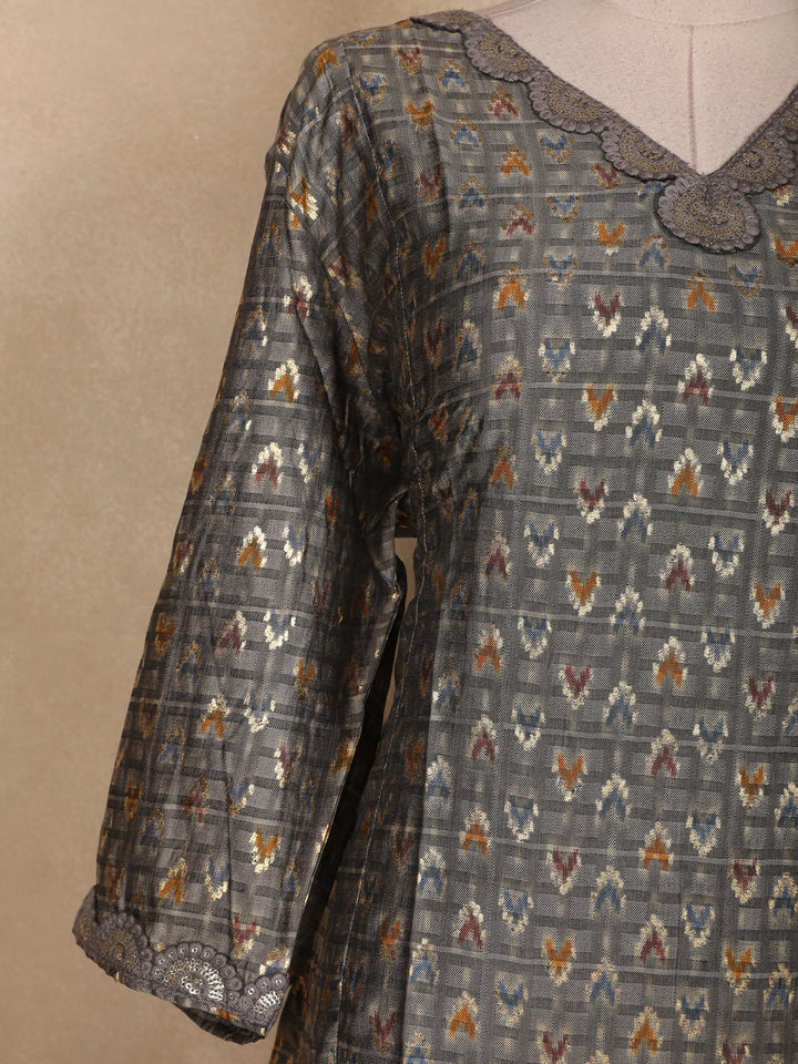 Gray Ikat Design Rayon Kurti