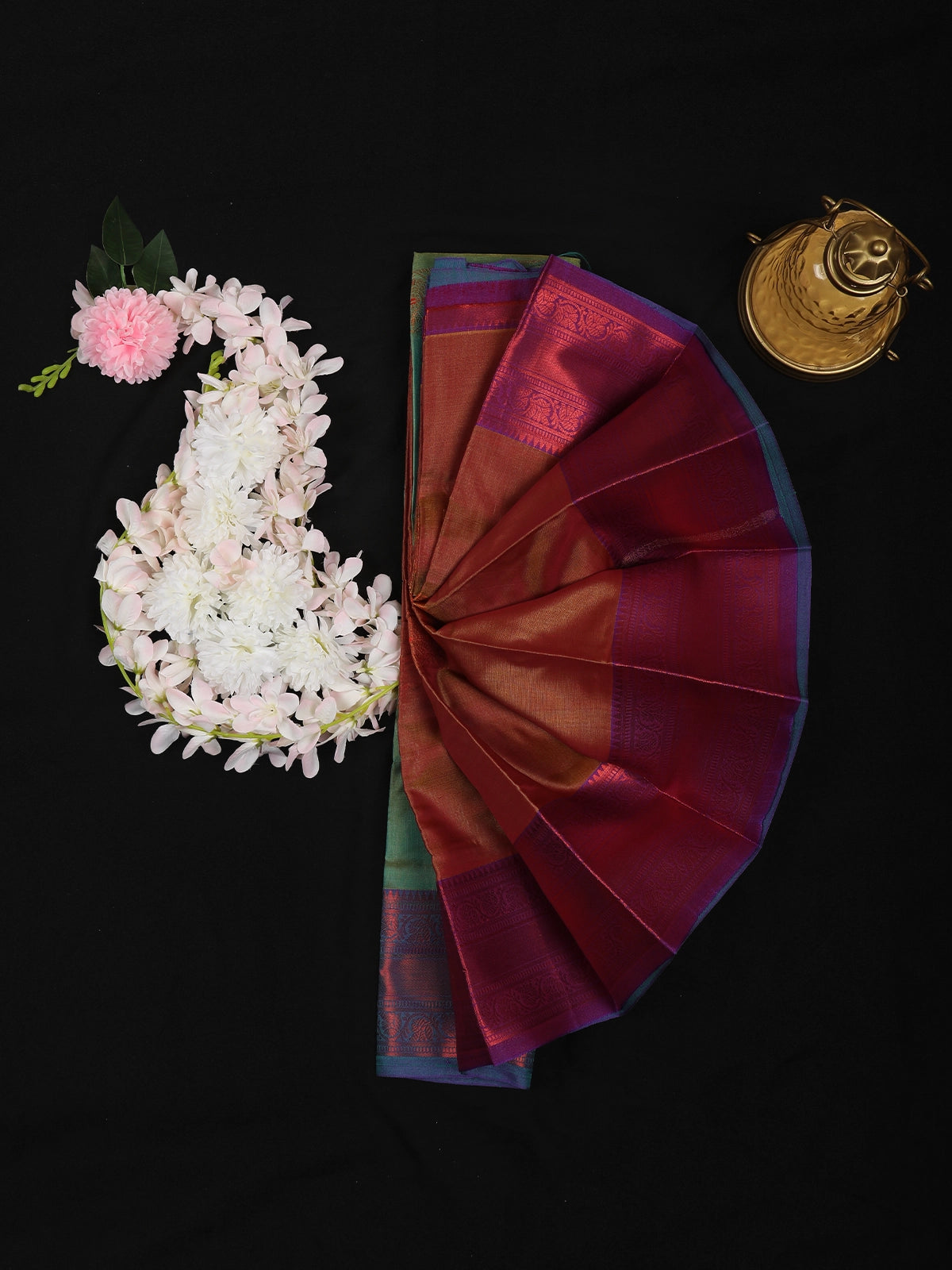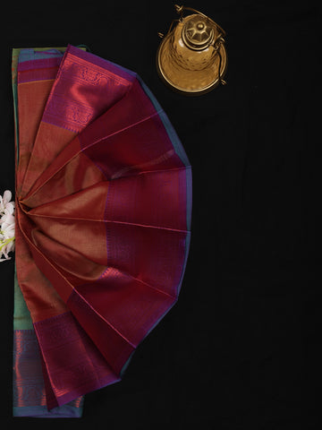 Green Butta Woven Soft Silk Saree with Blue Contrast Border