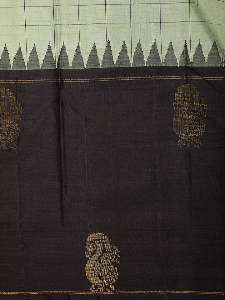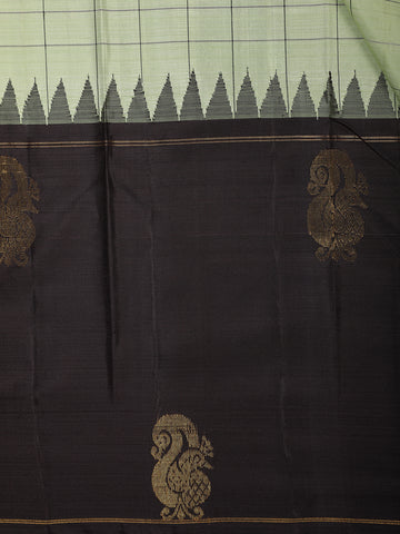 Green Checked Woven Design Pure Kanchipuram Silk Saree