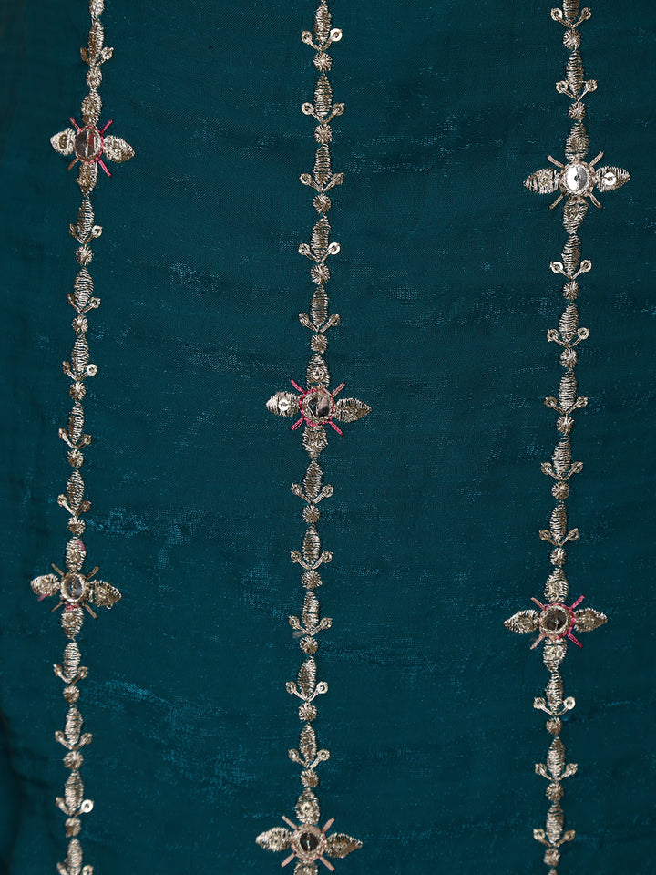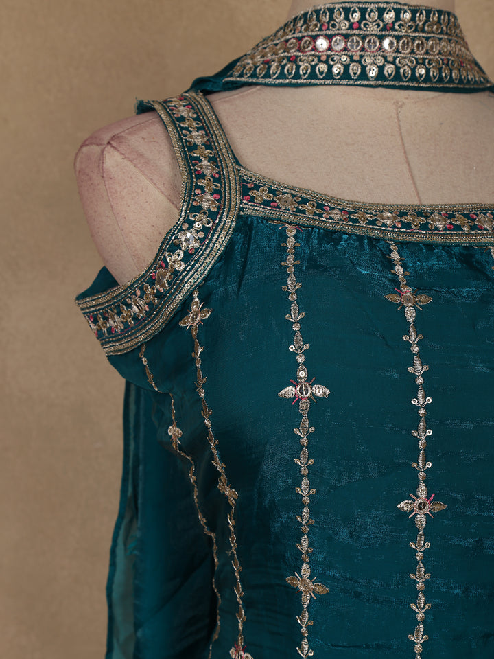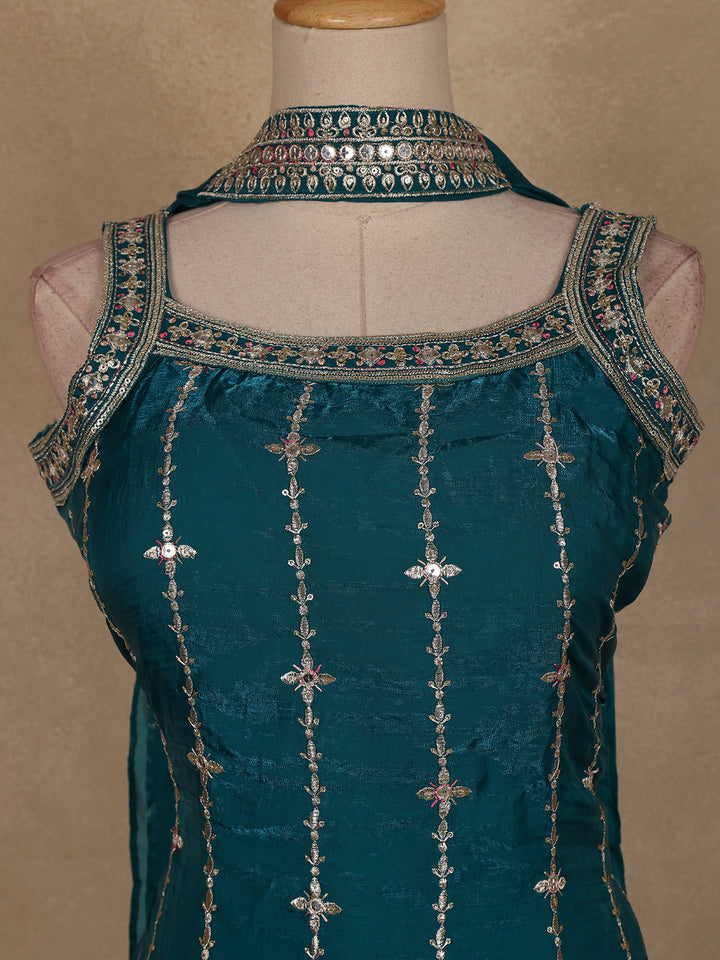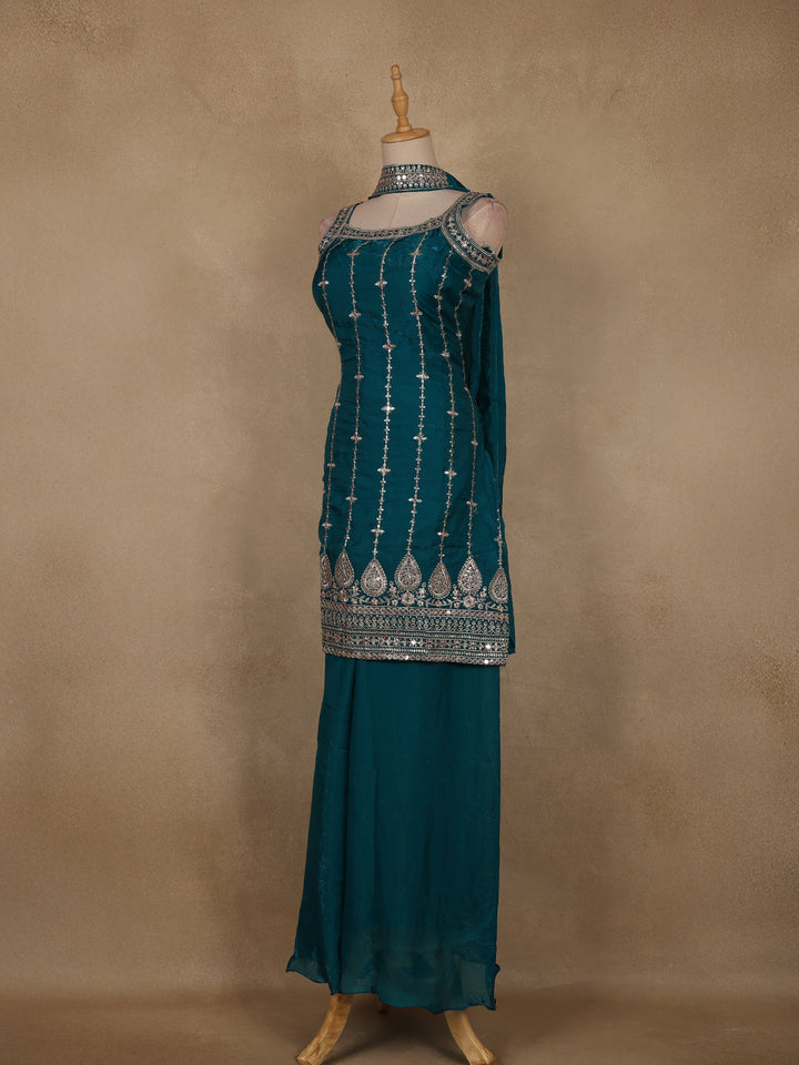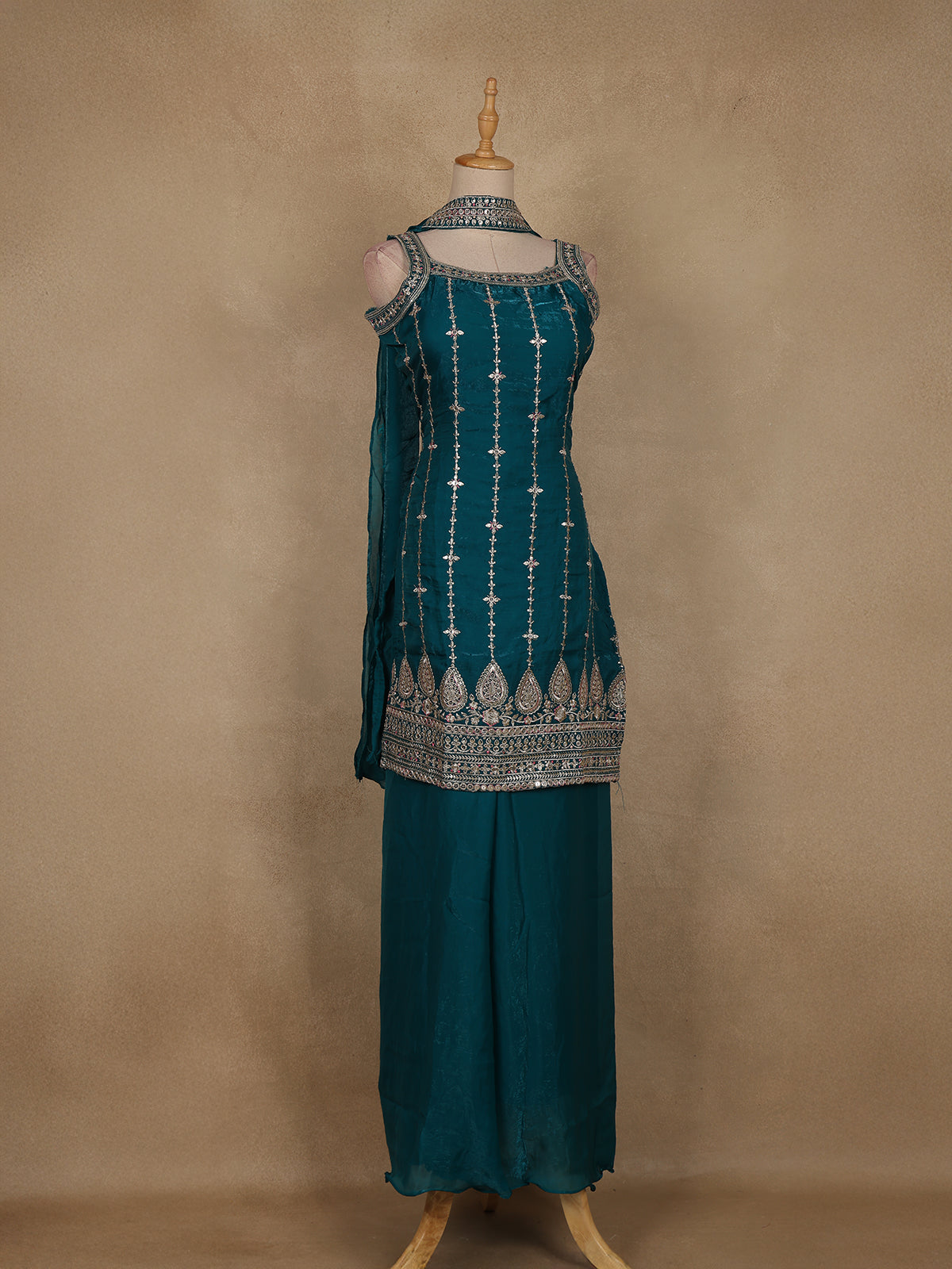 Green Floral Embroidered Design Space Silk Palazzo Suit with Dupatta