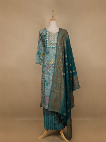 Green Floral Printed Cotton Salwar Suit with Dupatta