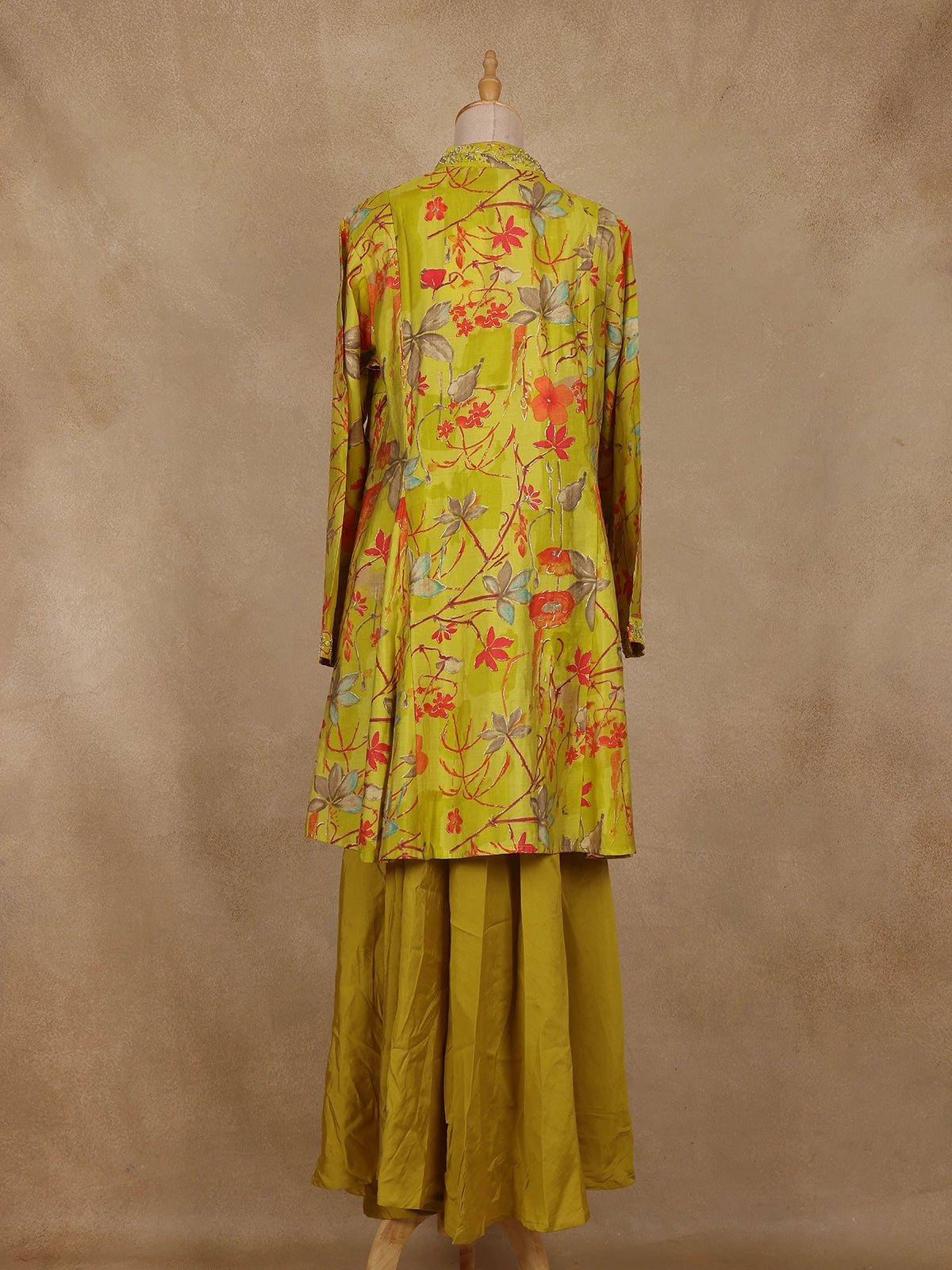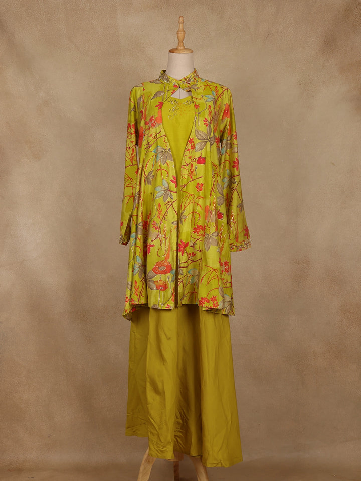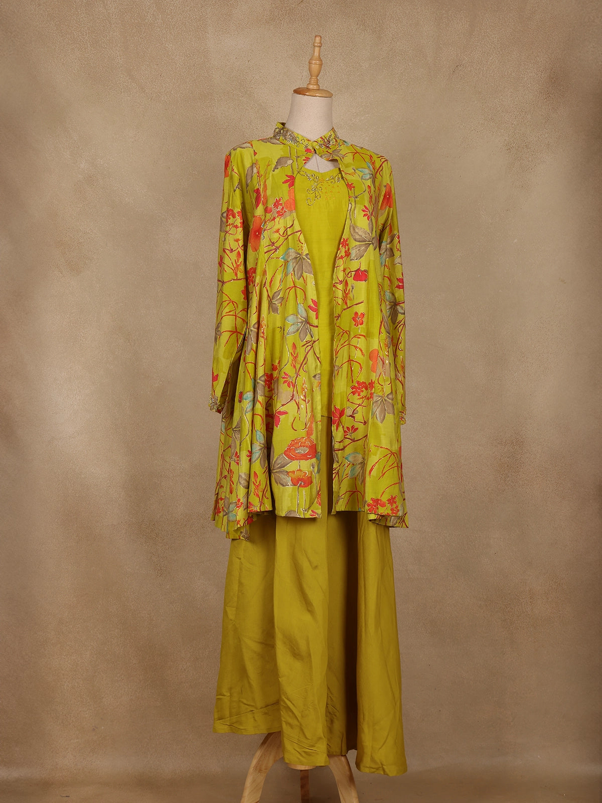 Green Floral Printed Crepe Silk Palazzo Suit with Jacket