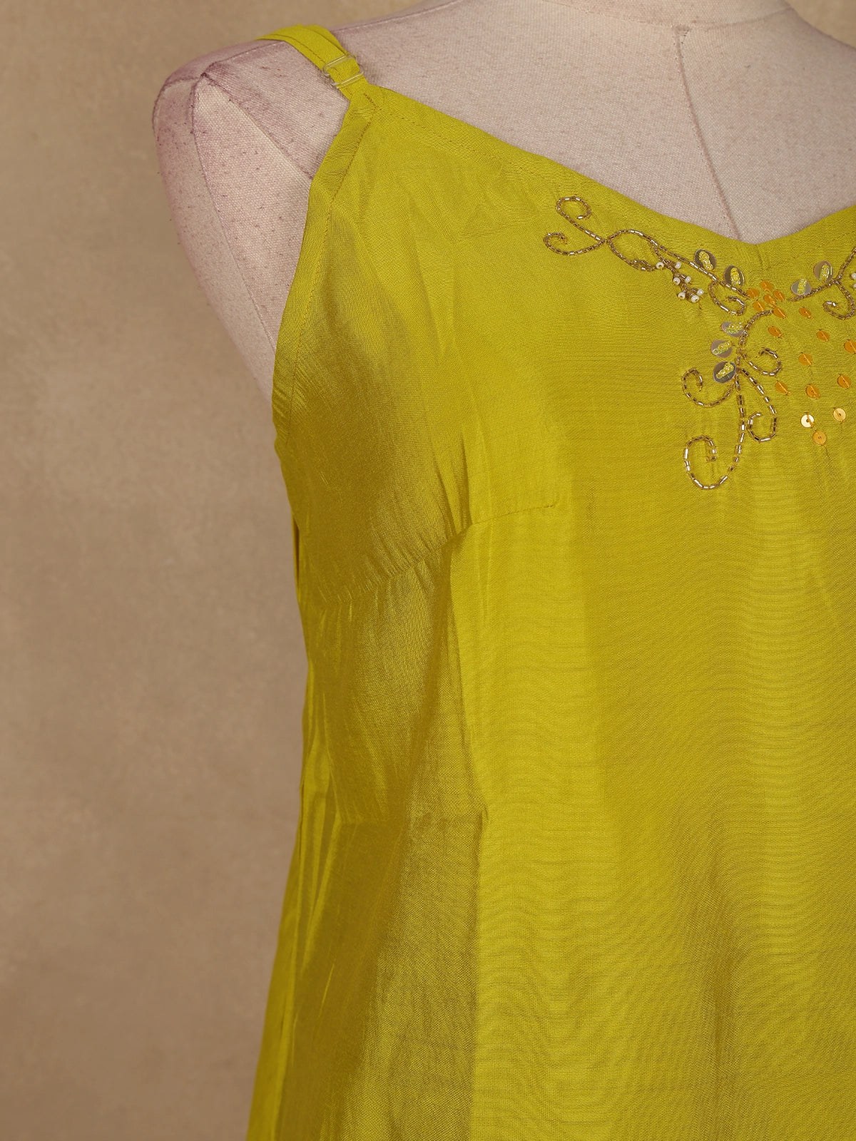 Step into effortless elegance with this green floral printed crepe silk palazzo suit. The V-neck inner, adorned with delicate embroidery, is beautifully layered with a full-sleeved floral printed jacket that exudes charm and sophistication. Crafted in soft crepe silk, the ensemble flows gracefully with every movement, offering both comfort and luxury. The vibrant floral motifs add a refreshing touch, making it an ideal pick for festive occasions, parties, and elegant gatherings. Pair it with statement earrings and heels for a poised, contemporary ethnic look.