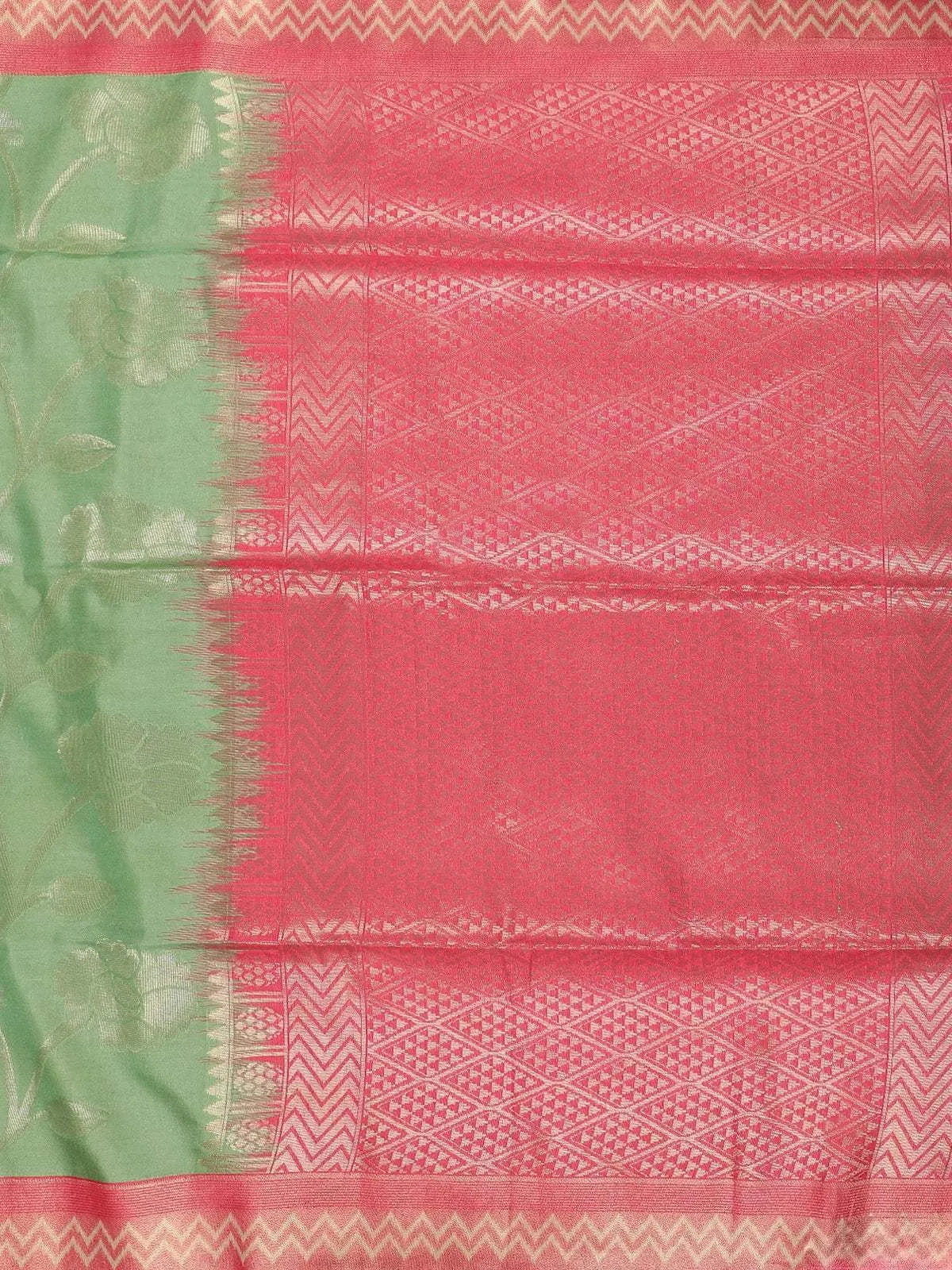 Green Semi Tussar Silk Saree with Floral Design on the Body with Border