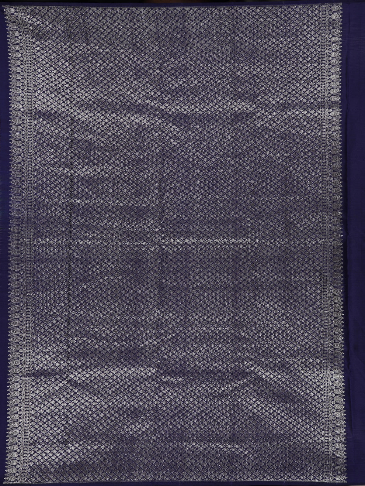 The contrast purple pallu and blouse elevate its allure, featuring delicate zari detailing that adds depth and richness to the design. Crafted from pure Kanchipuram silk, this drape offers a luxurious texture and a graceful fall, ideal for festive gatherings, traditional ceremonies, and weddings.