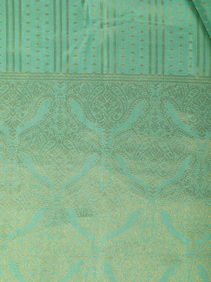 Green Striped Woven Design Pure Kanchipuram Silk Saree