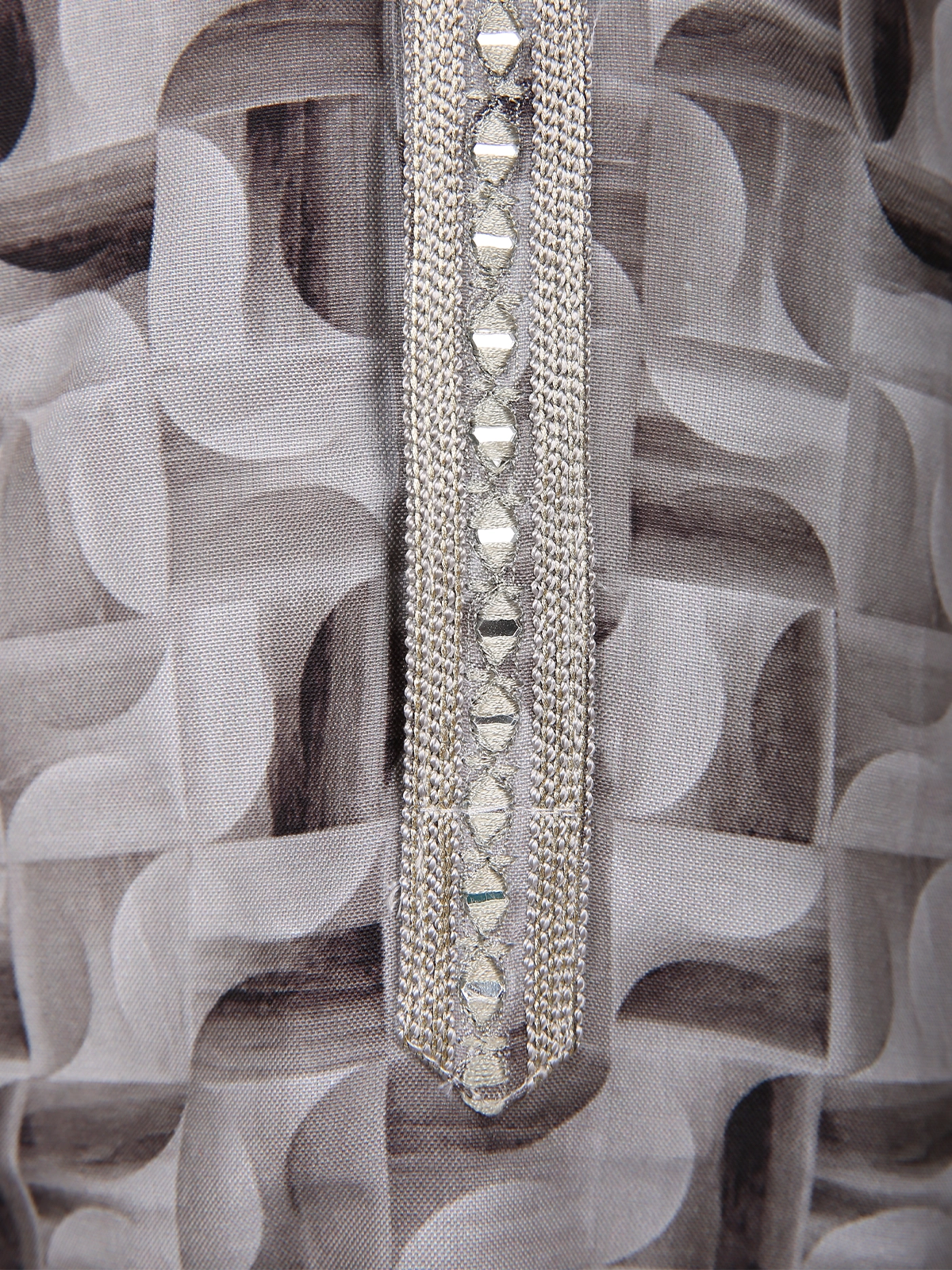 Grey Abstract Woven Design Cotton Kids Kurta Set