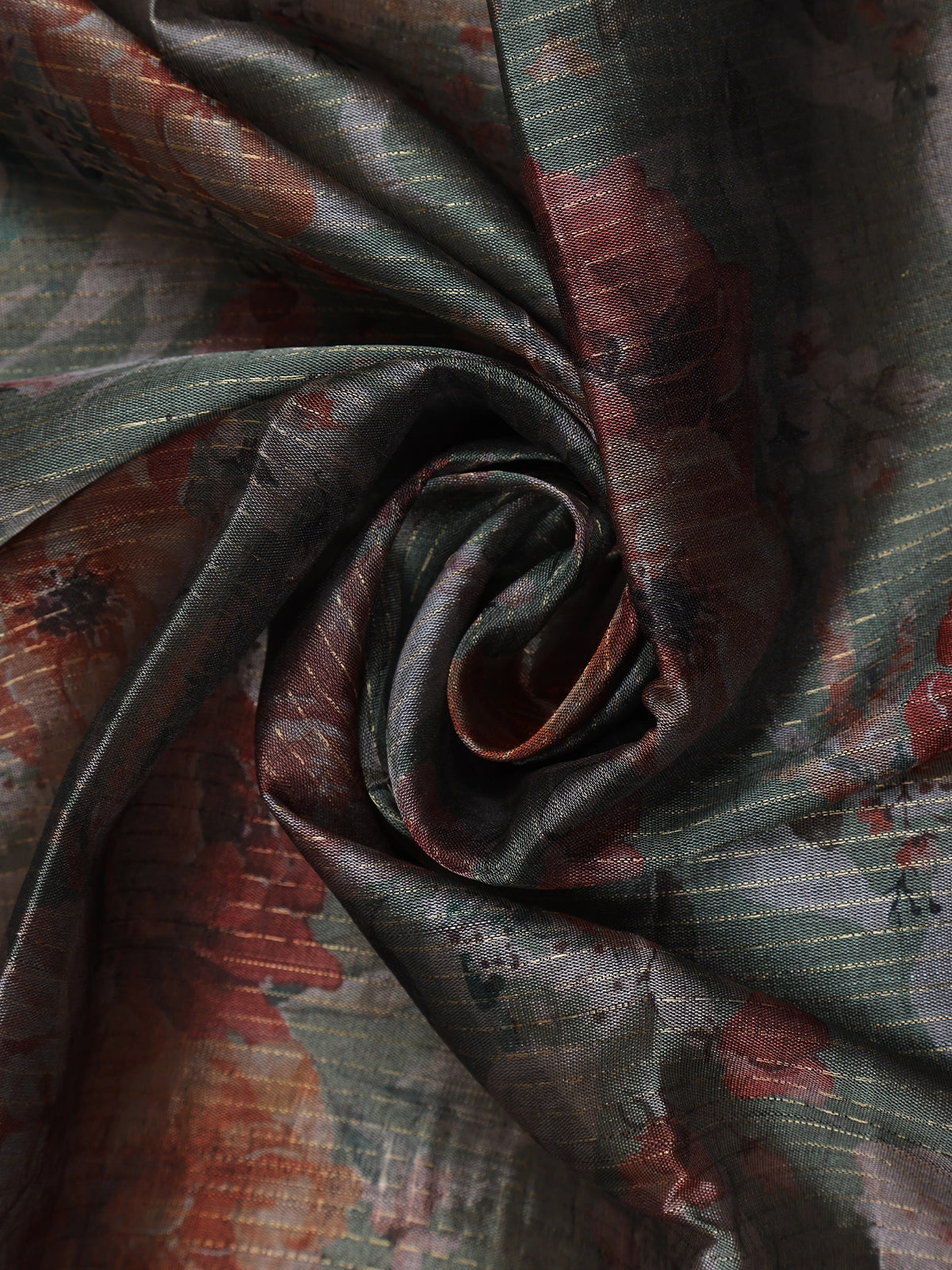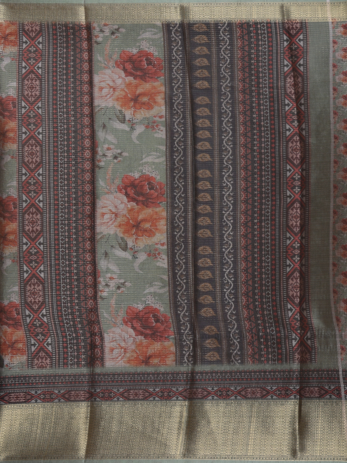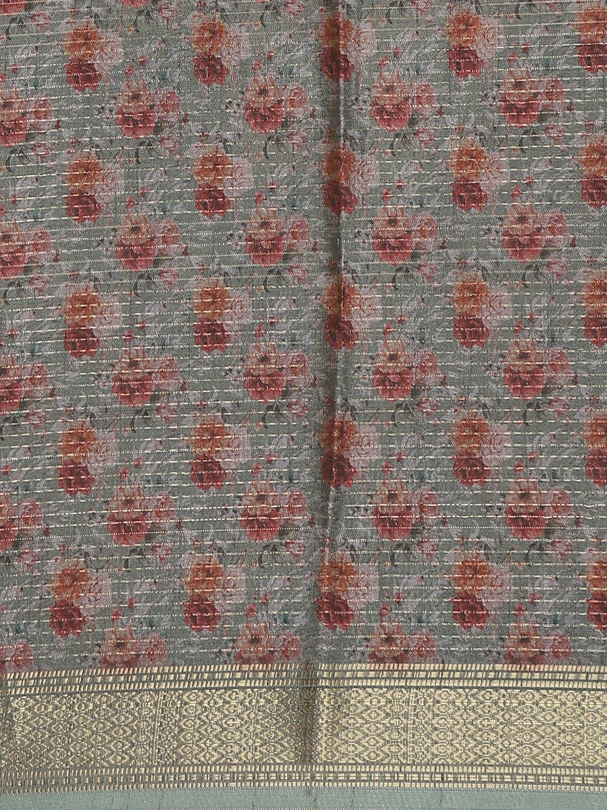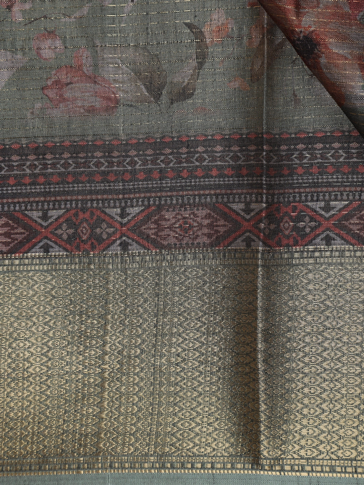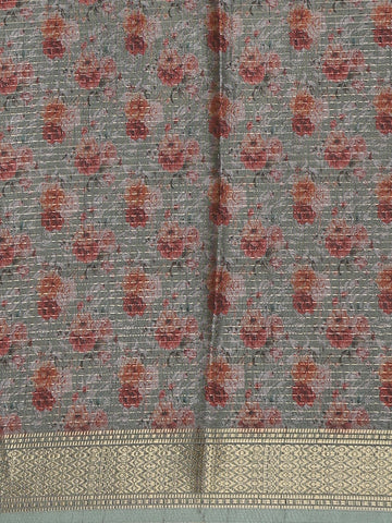 Grey and Maroon Floral Printed Design Mixed Cotton Fancy Saree with Zari Border