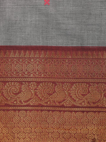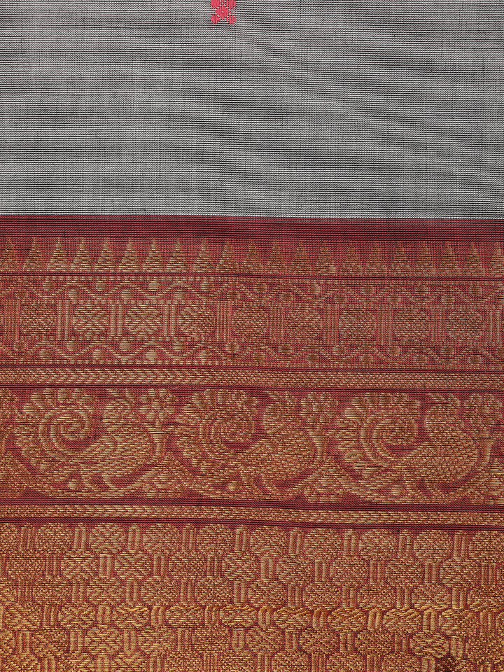 Grey Butta Woven Design Cotton Saree with Contrast Zari Border