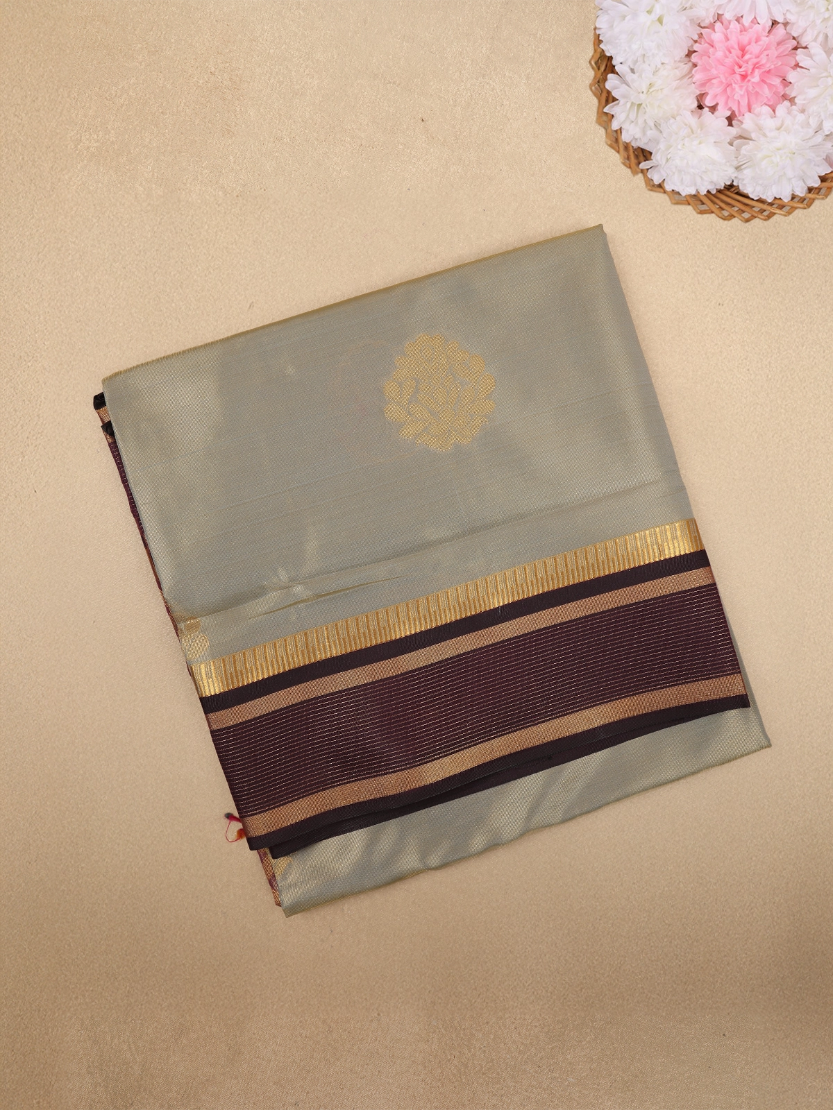 A timeless blend of sophistication and festive shine, this Grey Tissue Saree features beautifully woven gold zari butta motifs that elevate the minimal elegance of the body. The rich maroon zari border adds a luxurious contrast, making this saree perfect for traditional events, gifting and graceful celebrations. Lightweight, soft, and easy to drape — a stunning pick for any occasion.