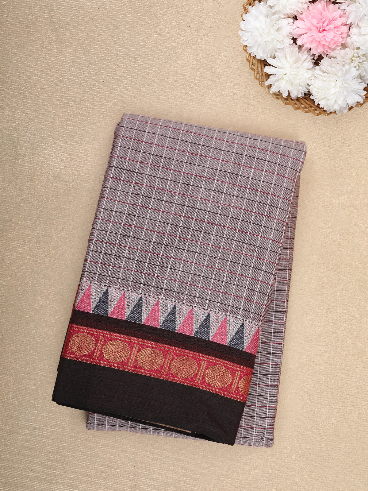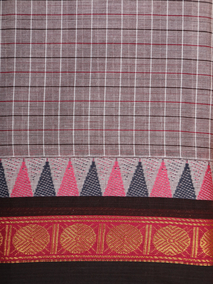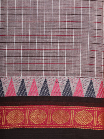 Grey Checked Woven Design Cotton Saree with Black Zari Woven Border