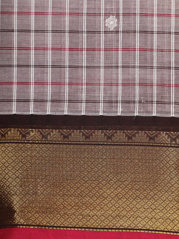 Grey Checks Design Cotton Saree with Black Zari Woven Border