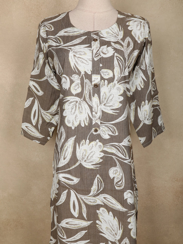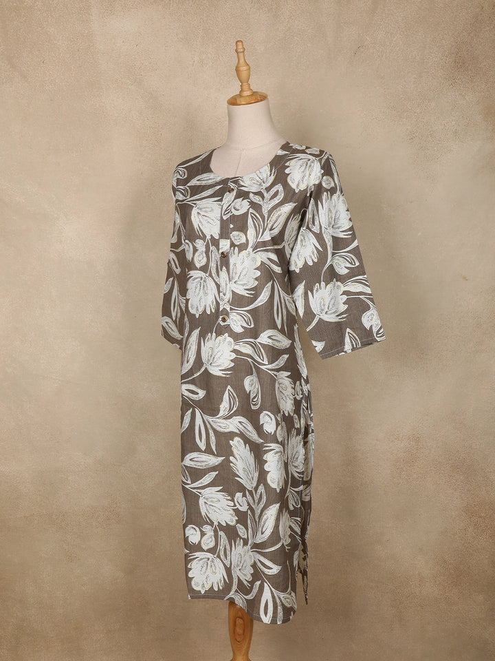 Grey Floral Printed Design Cotton Kurti