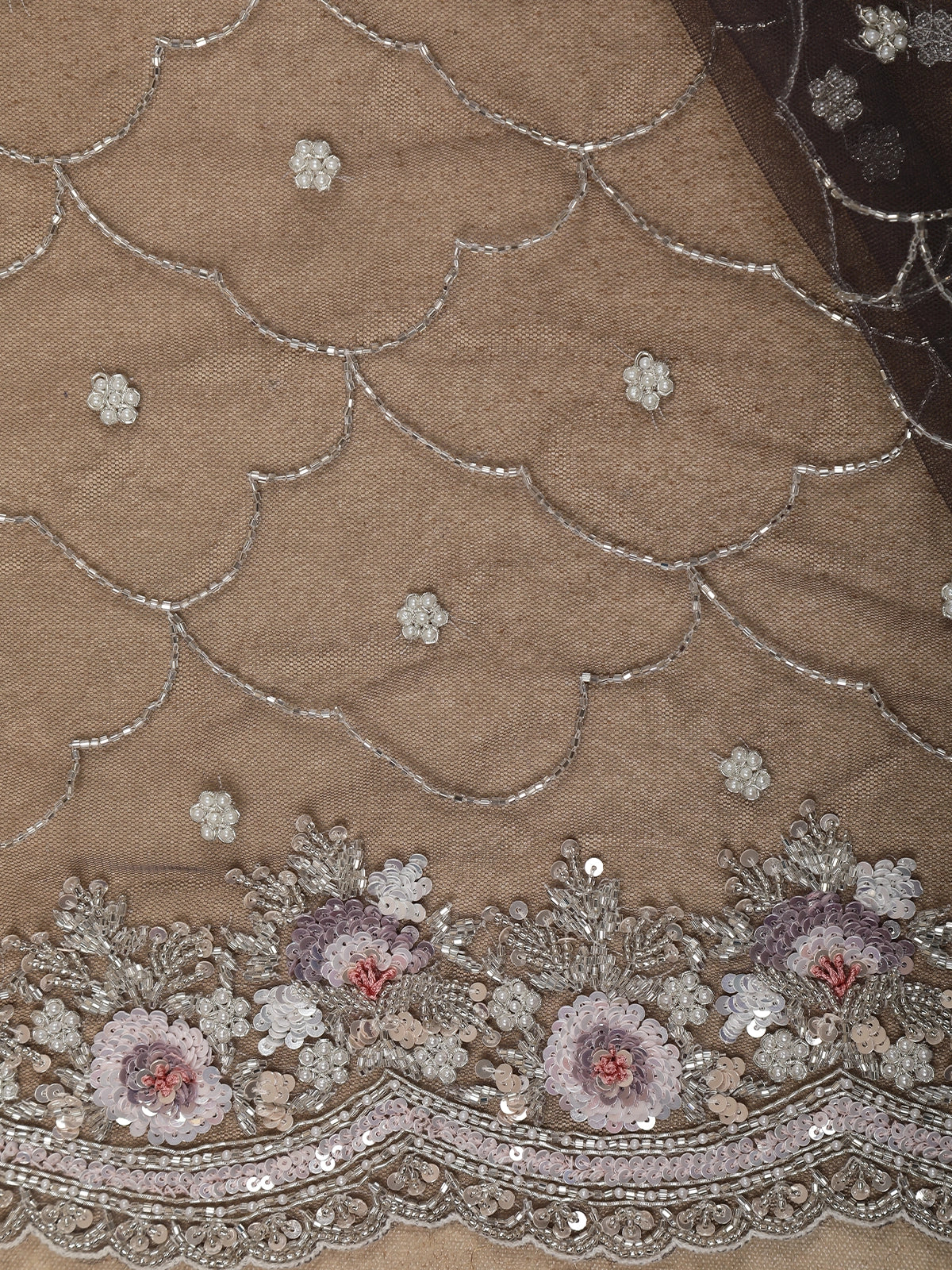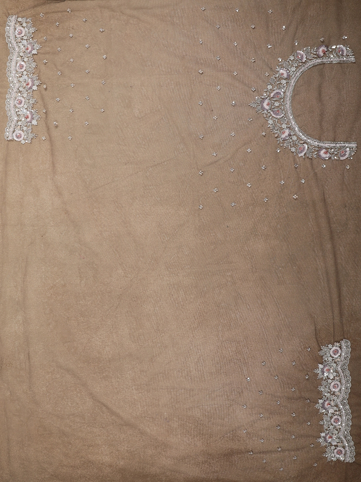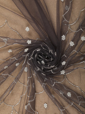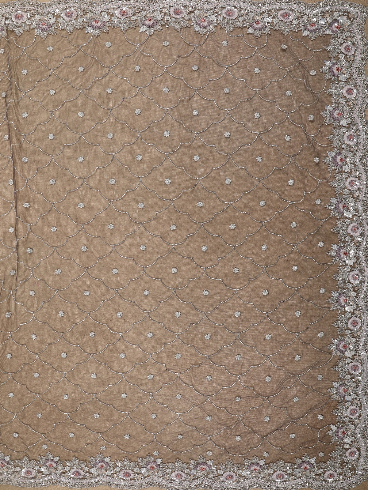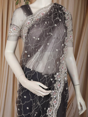 Grey Floral Sequins and beads Embroidered Design Net Designer Saree