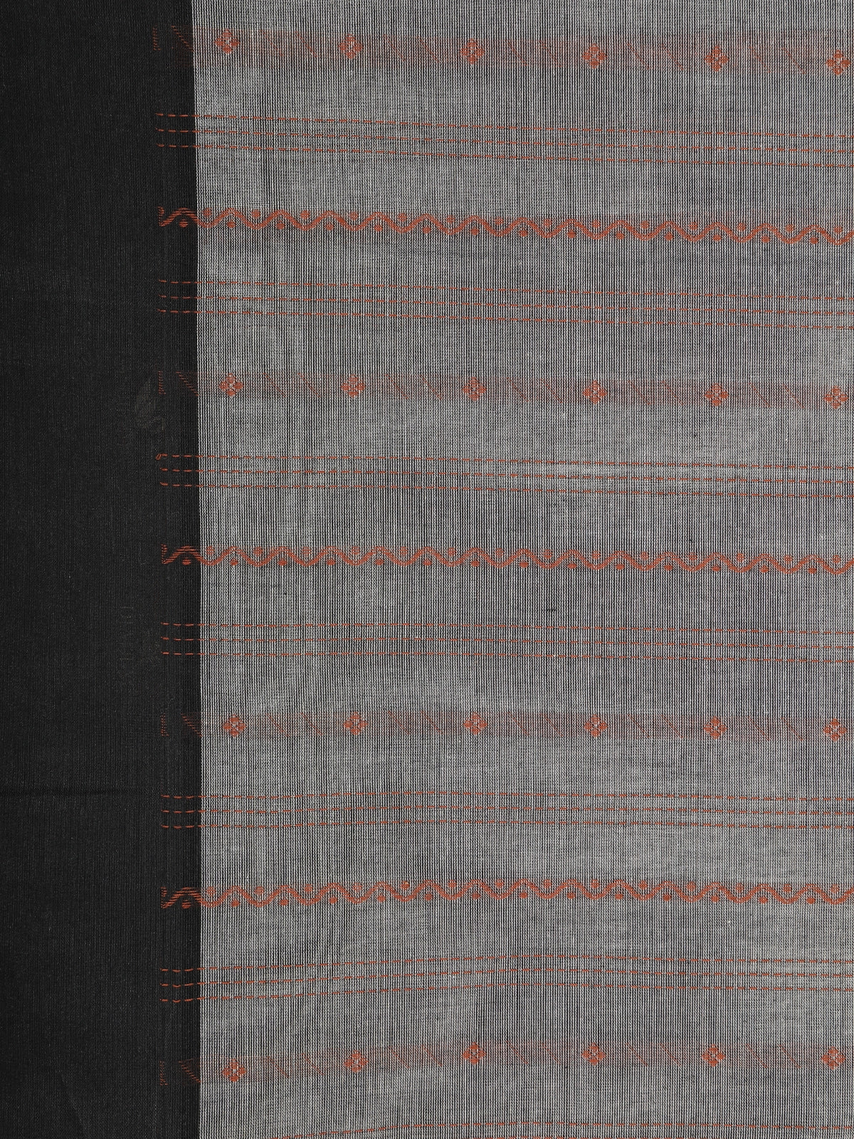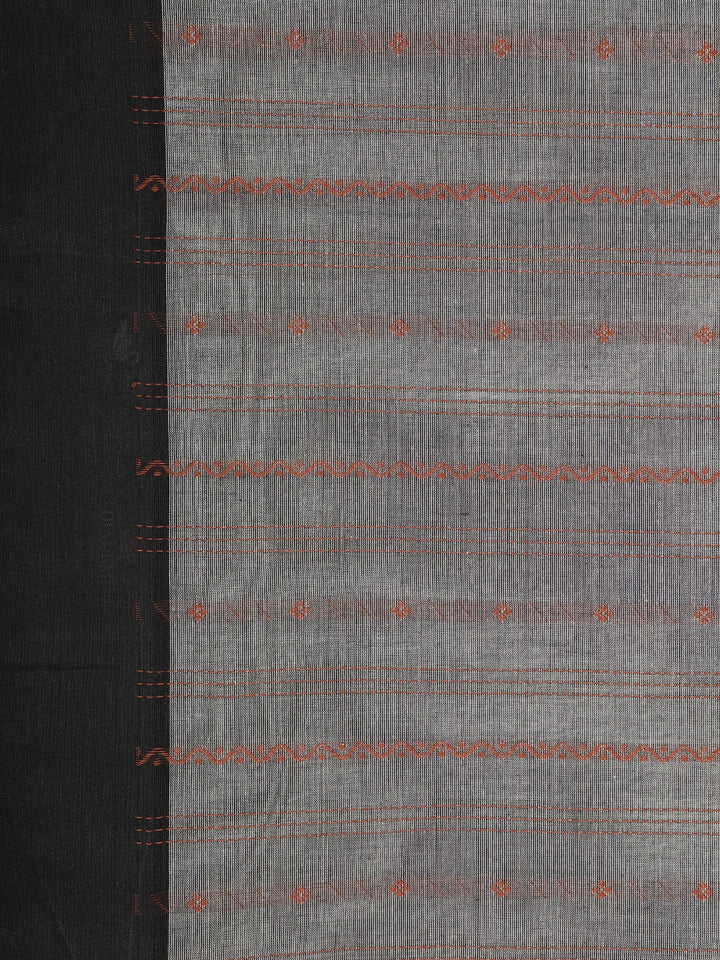Discover everyday elegance with this Grey Stripes Cotton Saree, crafted to bring comfort and style together. The saree features fine striped weaving across the body enhanced with subtle rust-toned geometric motifs, beautifully balancing modern aesthetics with traditional craftsmanship.