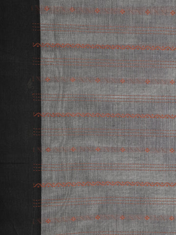 Grey Stripes Design Cotton Saree with Contrast Black Border