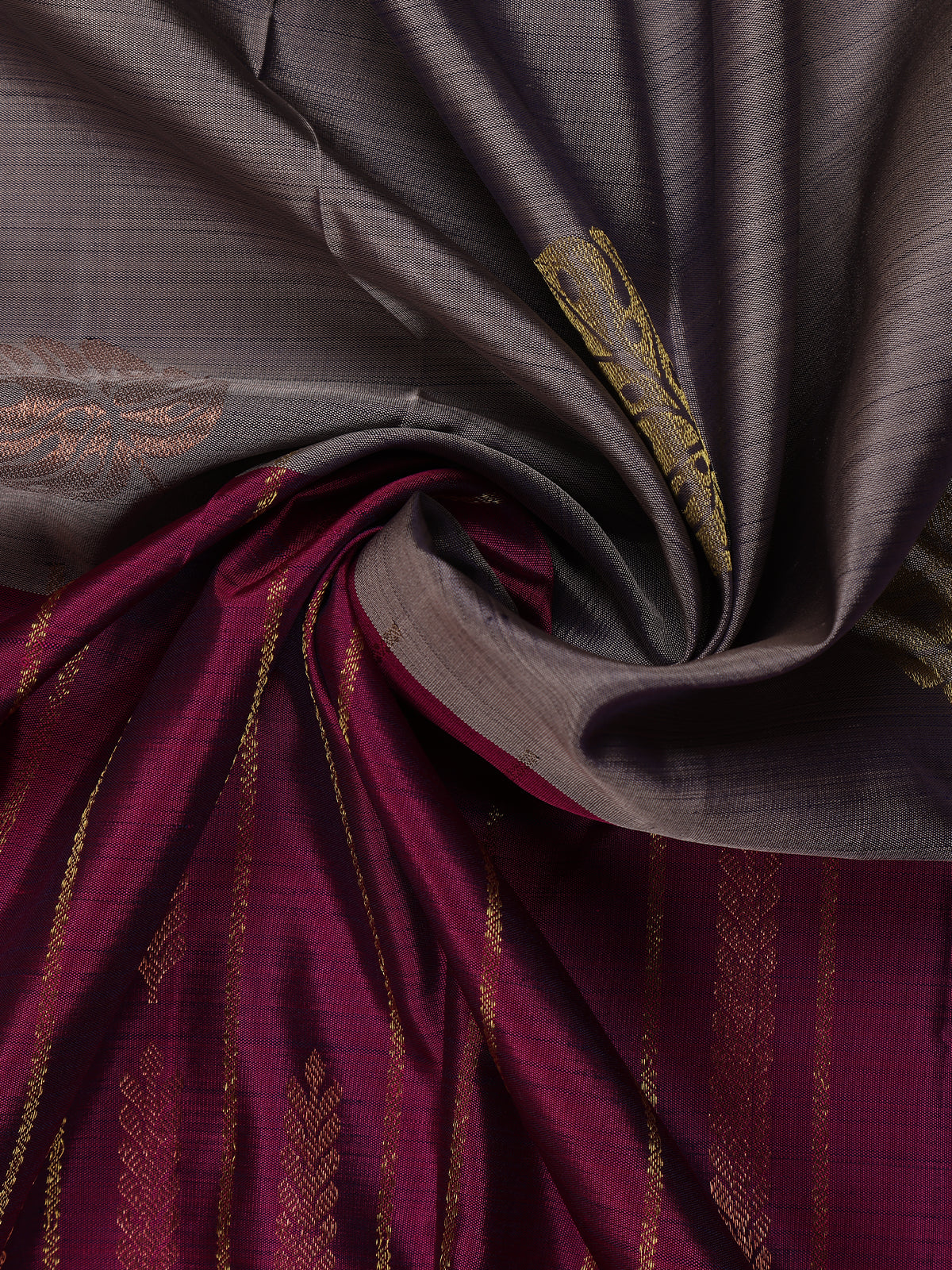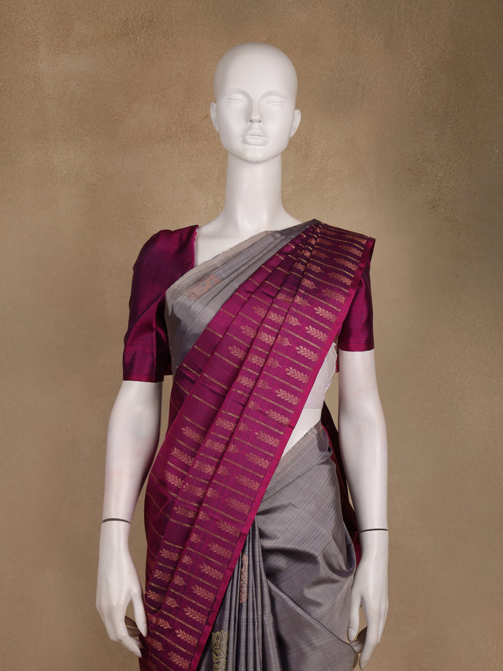 Grey Stripes Woven Design Kanchipuram Silk Saree
