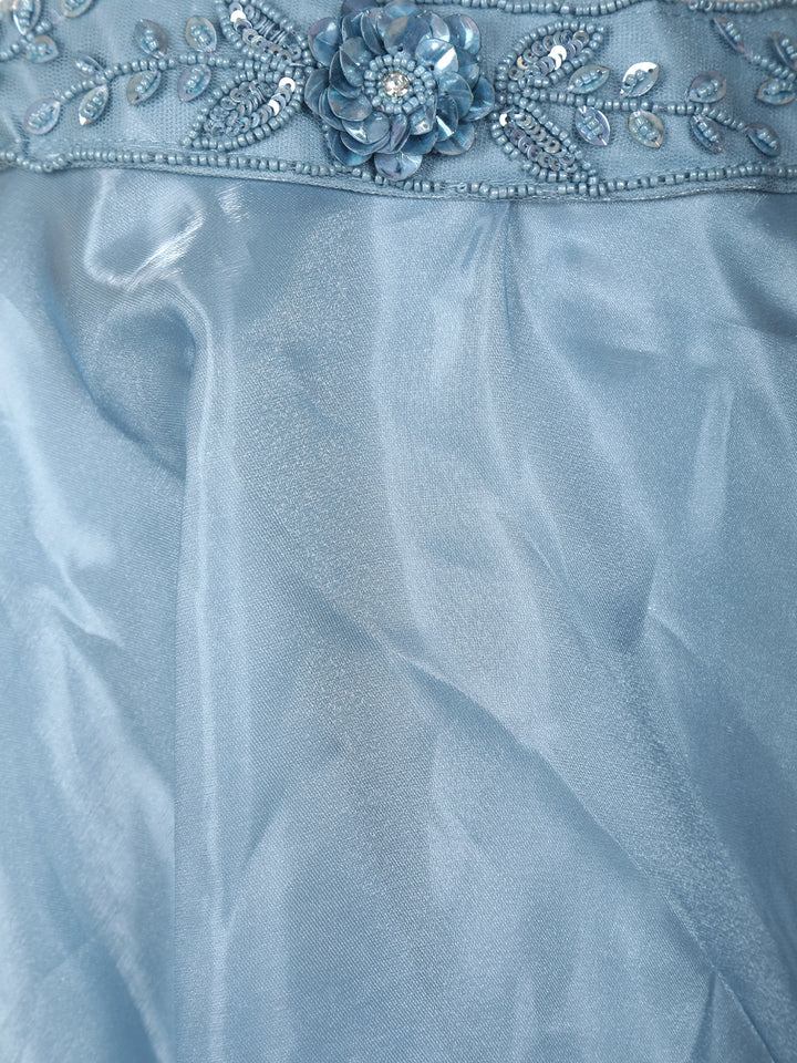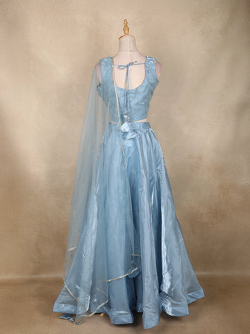 Ice Blue 3D Floral Sequins Embroidered Organza Lehenga with Net Dupatta