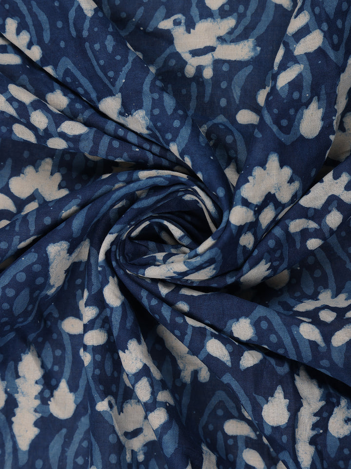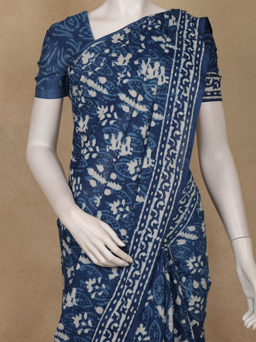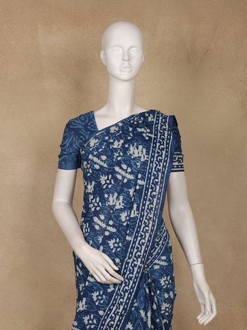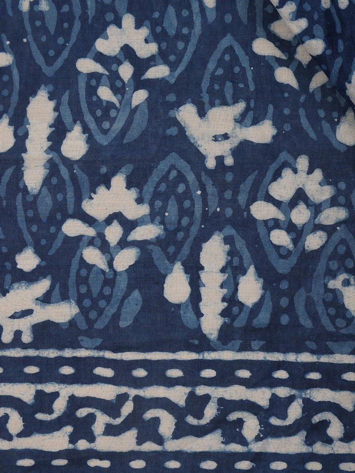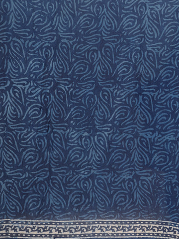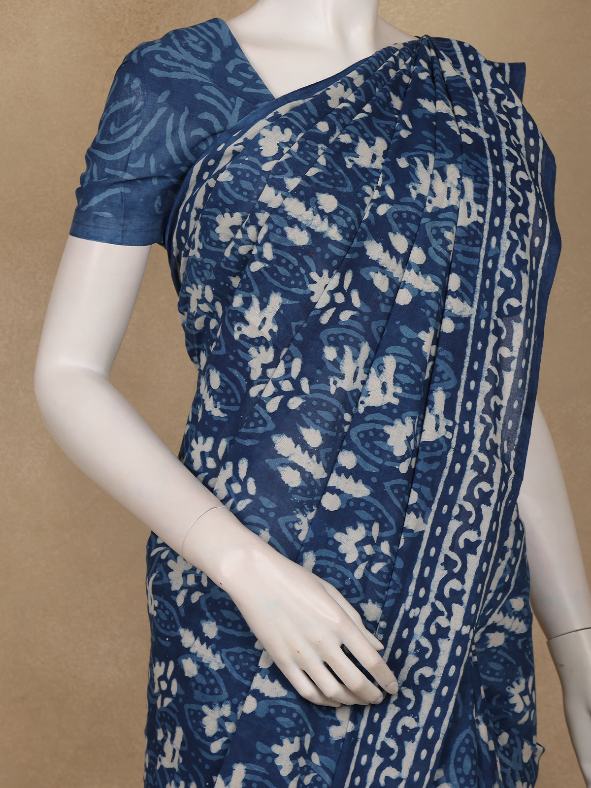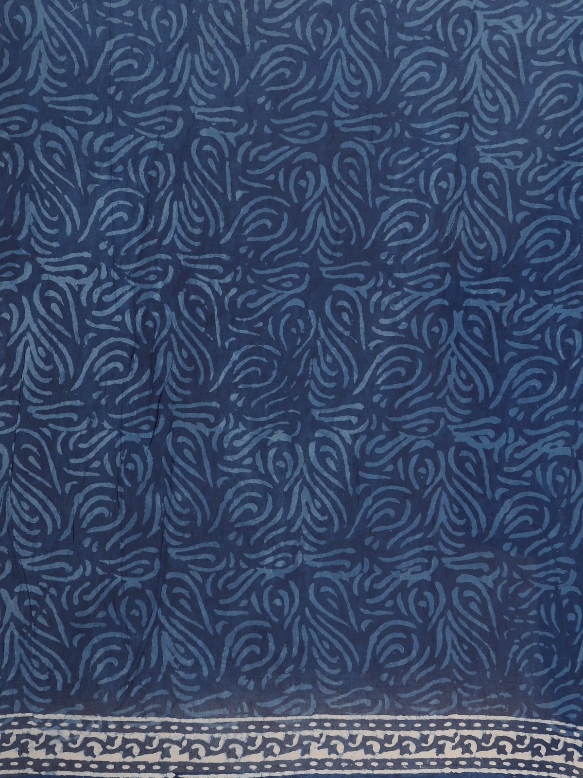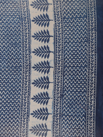 Indigo Blue Block Printed Mul Mul Cotton Saree