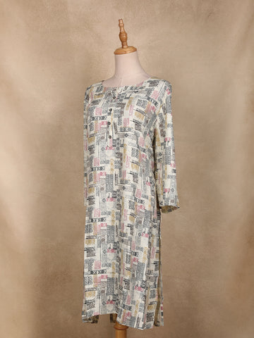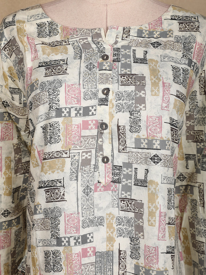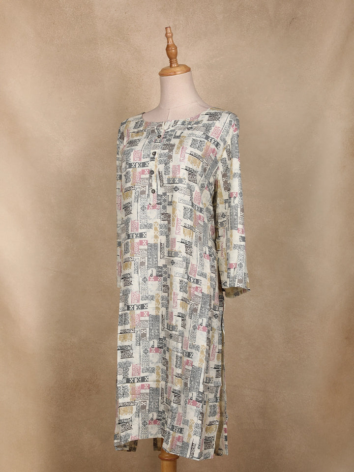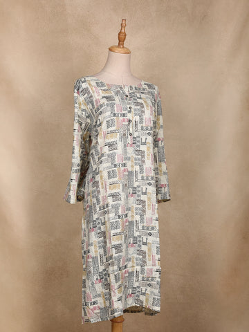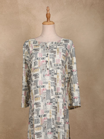 Ivory Abstract Printed Cotton Kurti