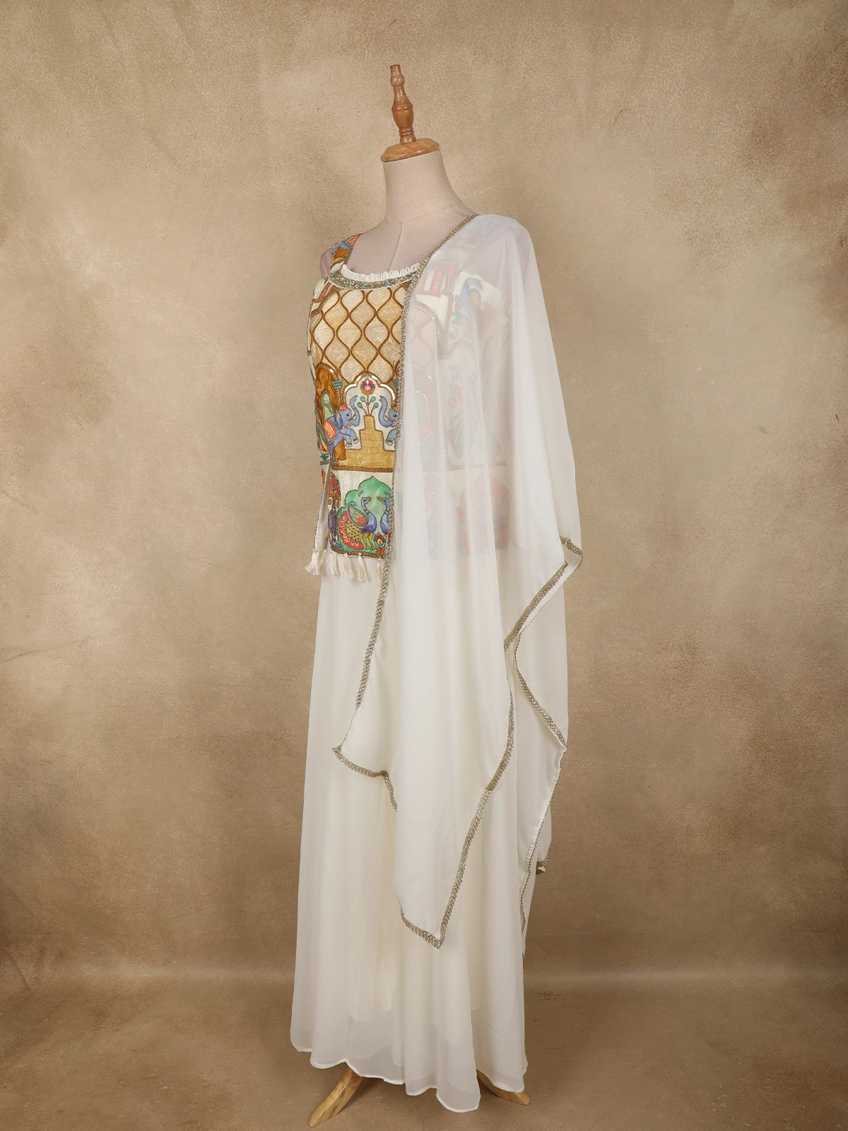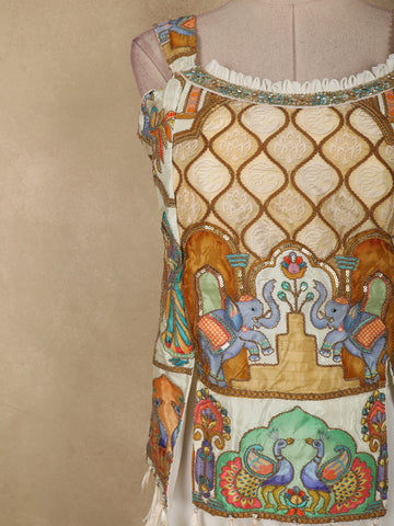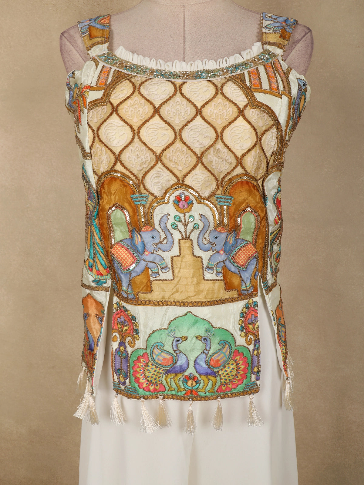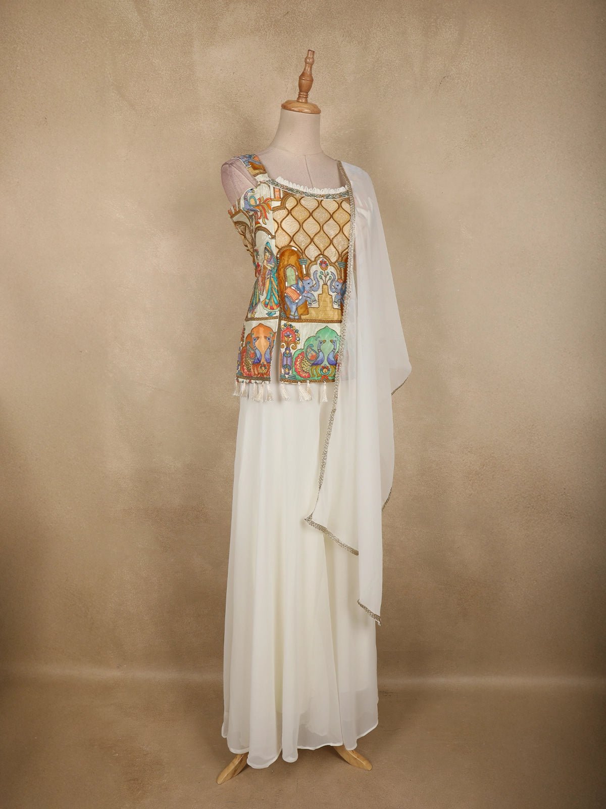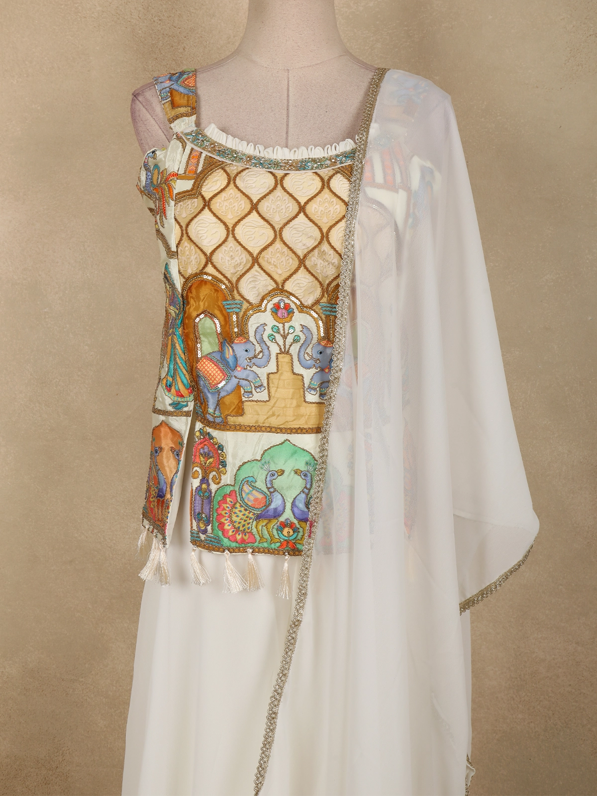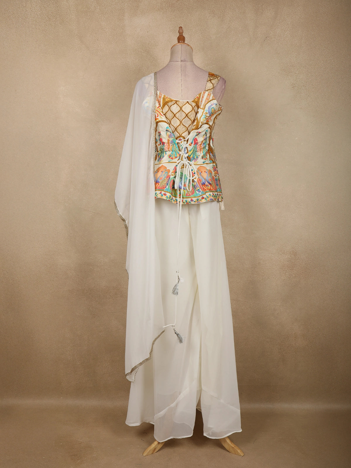 Ivory Embroidered Animal Printed Georgette Palazzo Suit