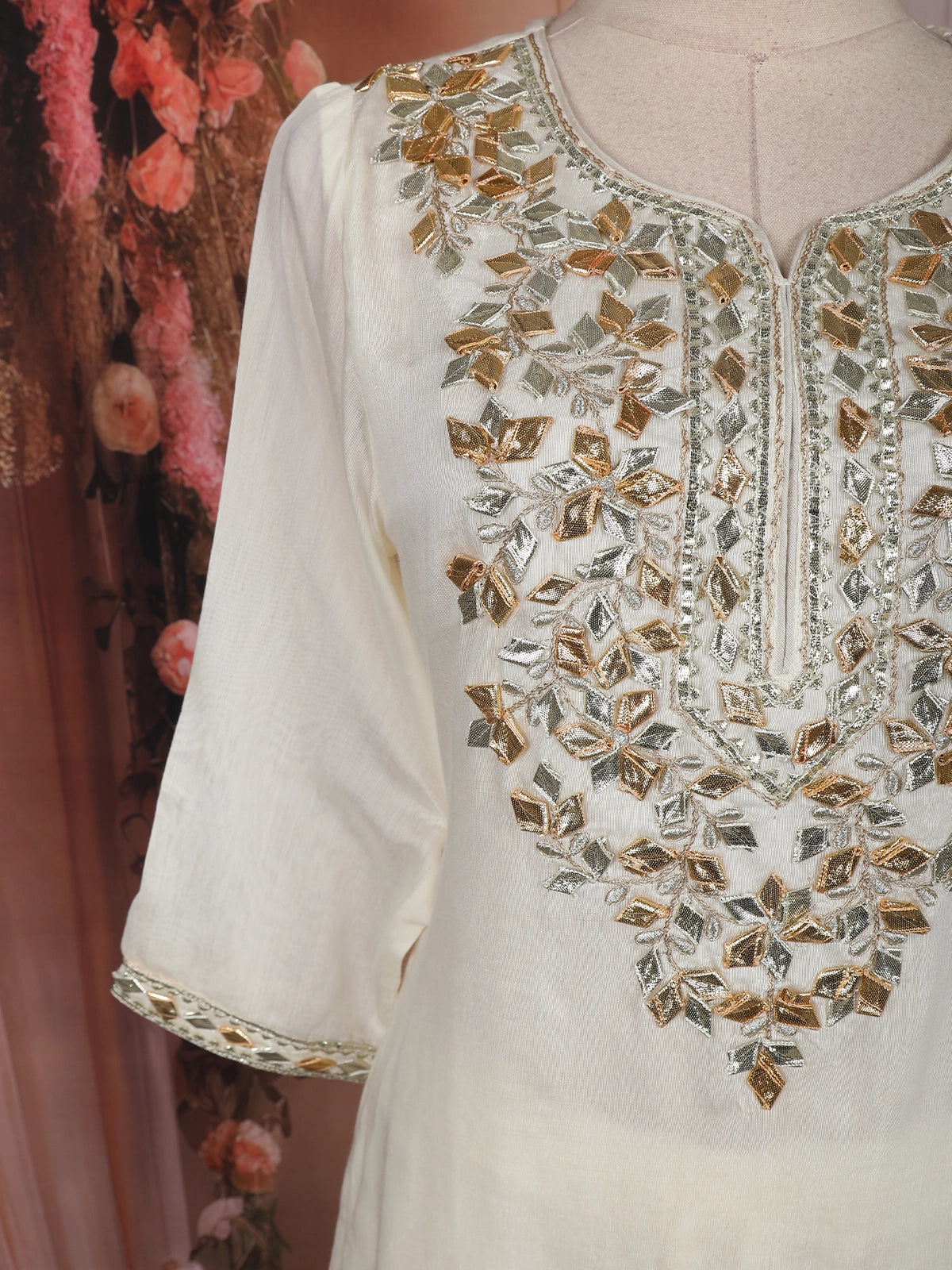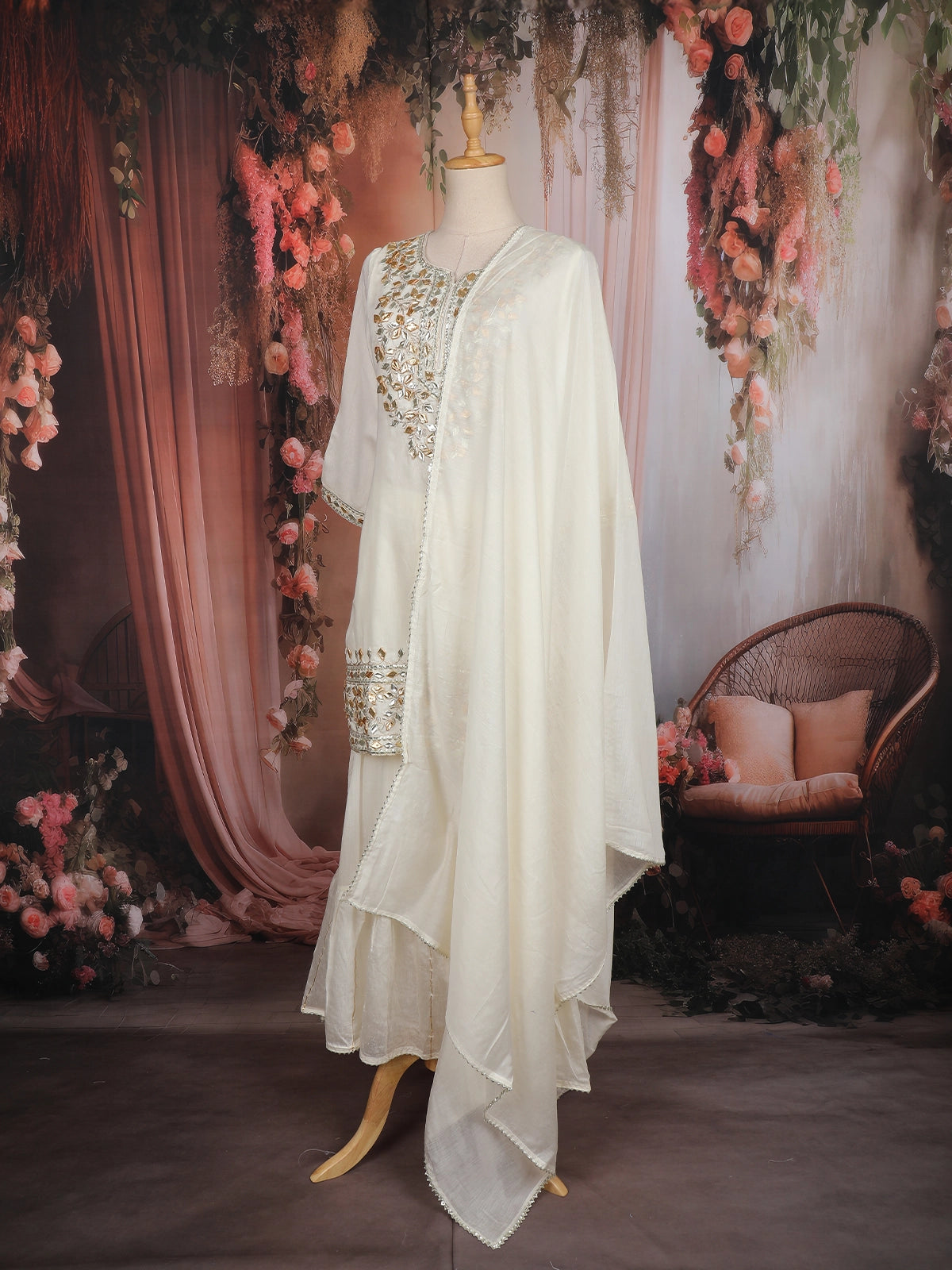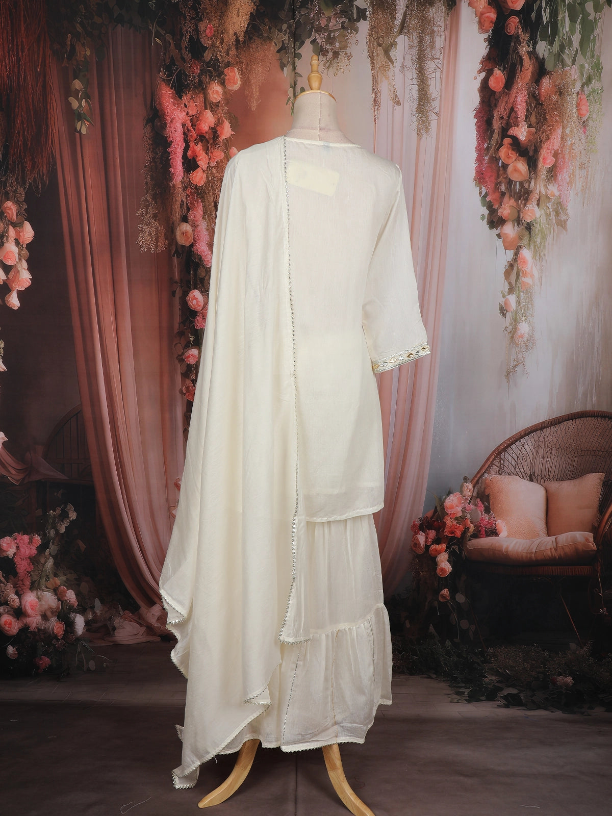 Ivory Embroidered Cotton Sharara Salwar Suit