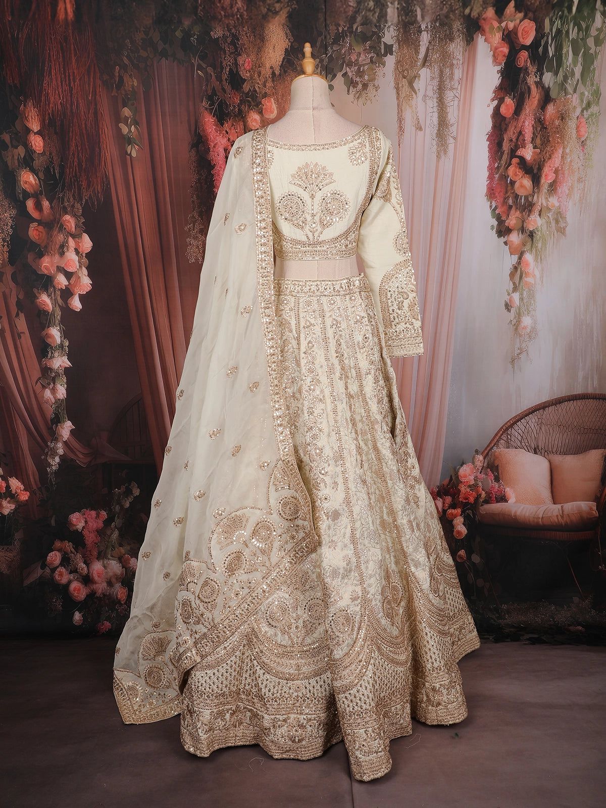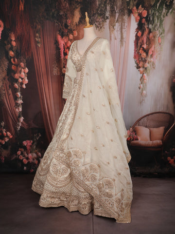 Ivory Floral Embroidered Bridal Raw Silk Lehenga