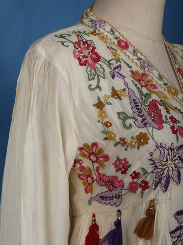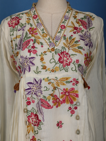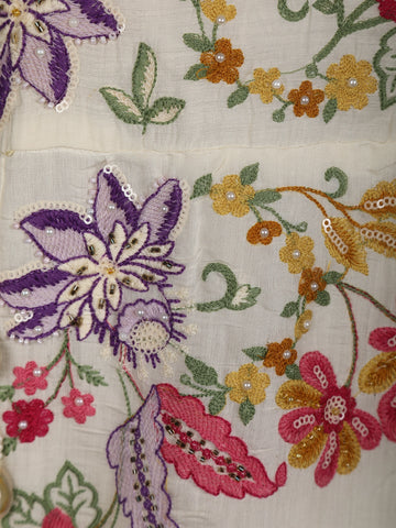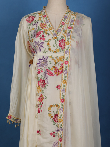 Ivory Floral Embroidered Cotton Salwar Suit