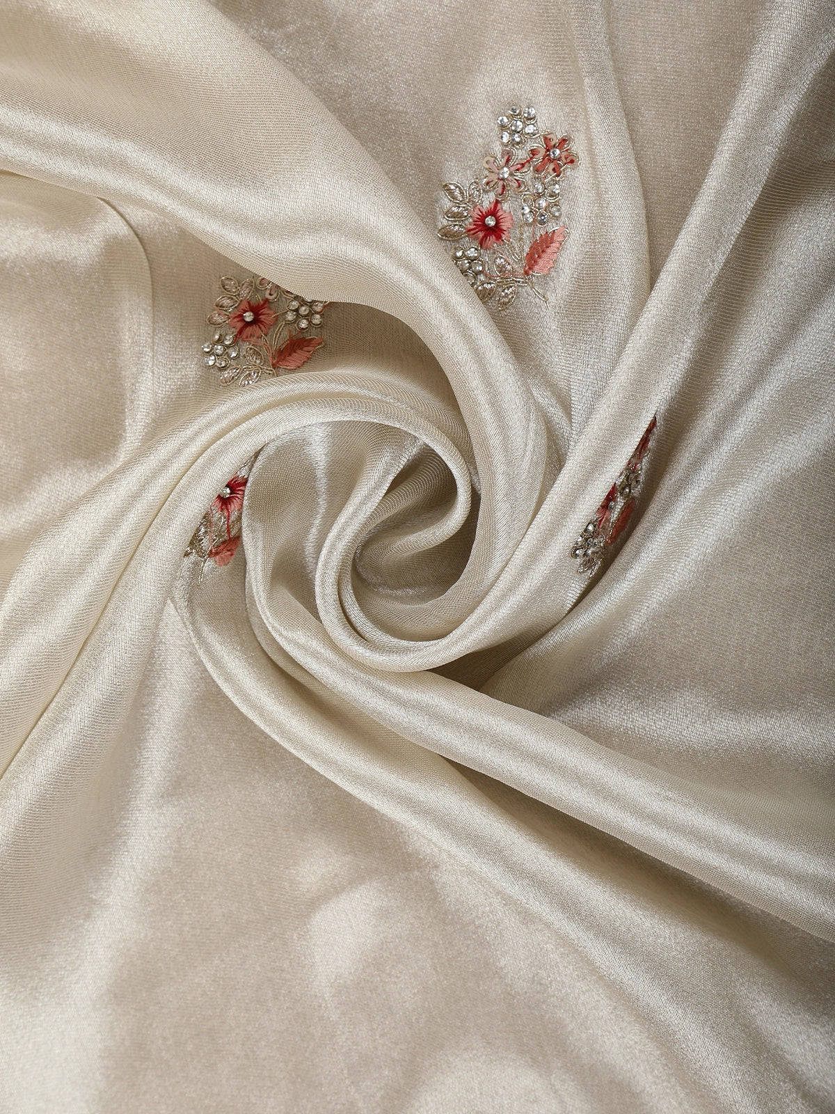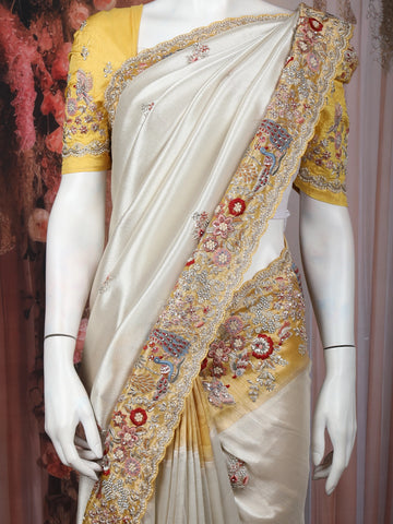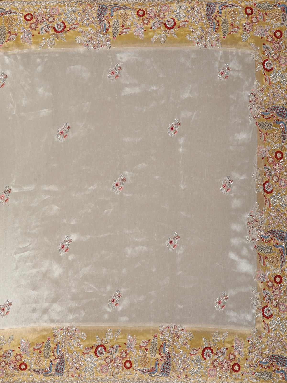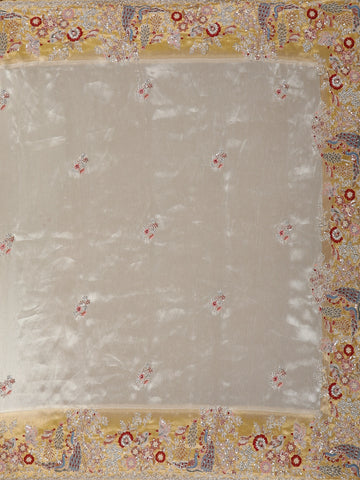 Ivory Floral Embroidered Tissue Organza Saree with Designer Border