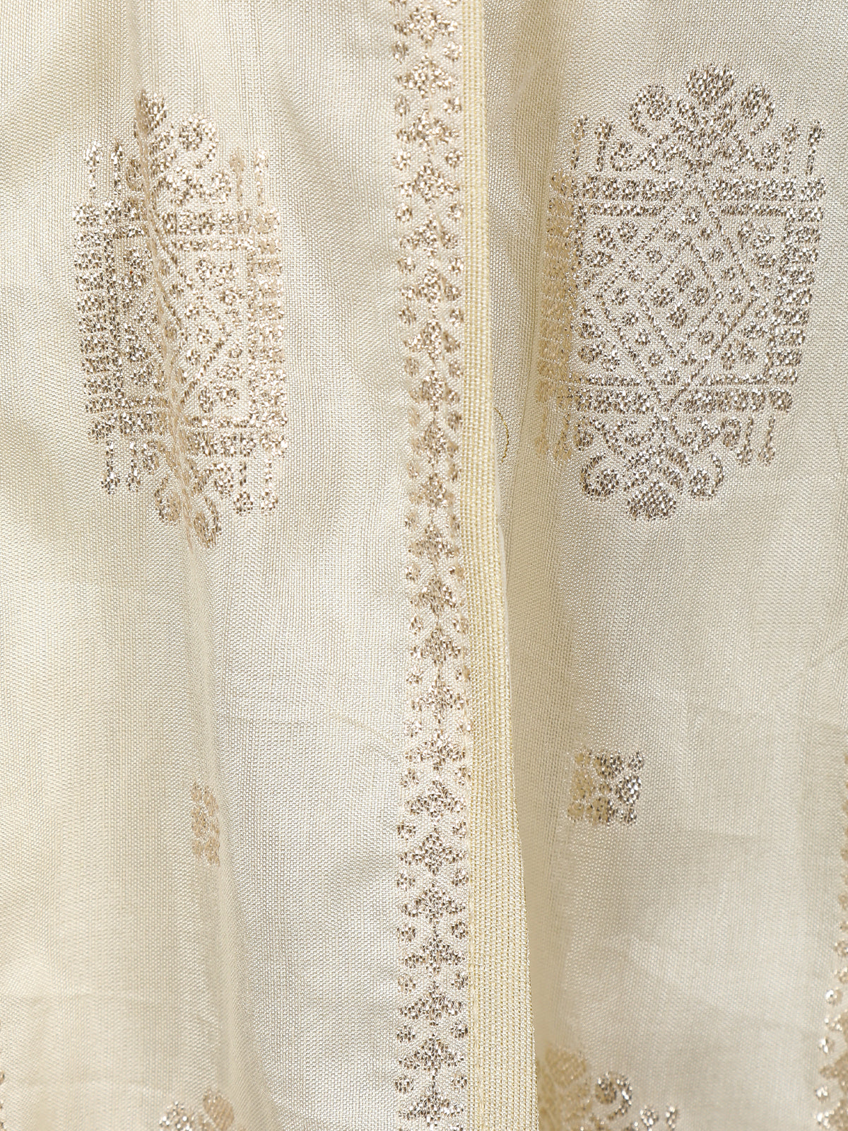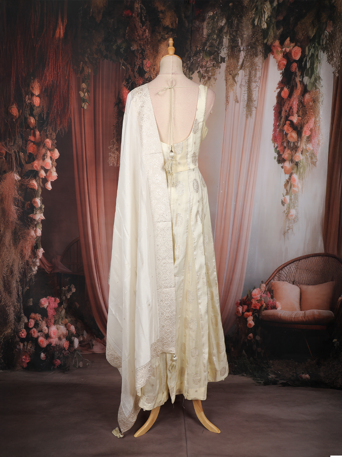 Ivory Floral Embroidered Tissue Silk Palazzo Suit with Dupatta