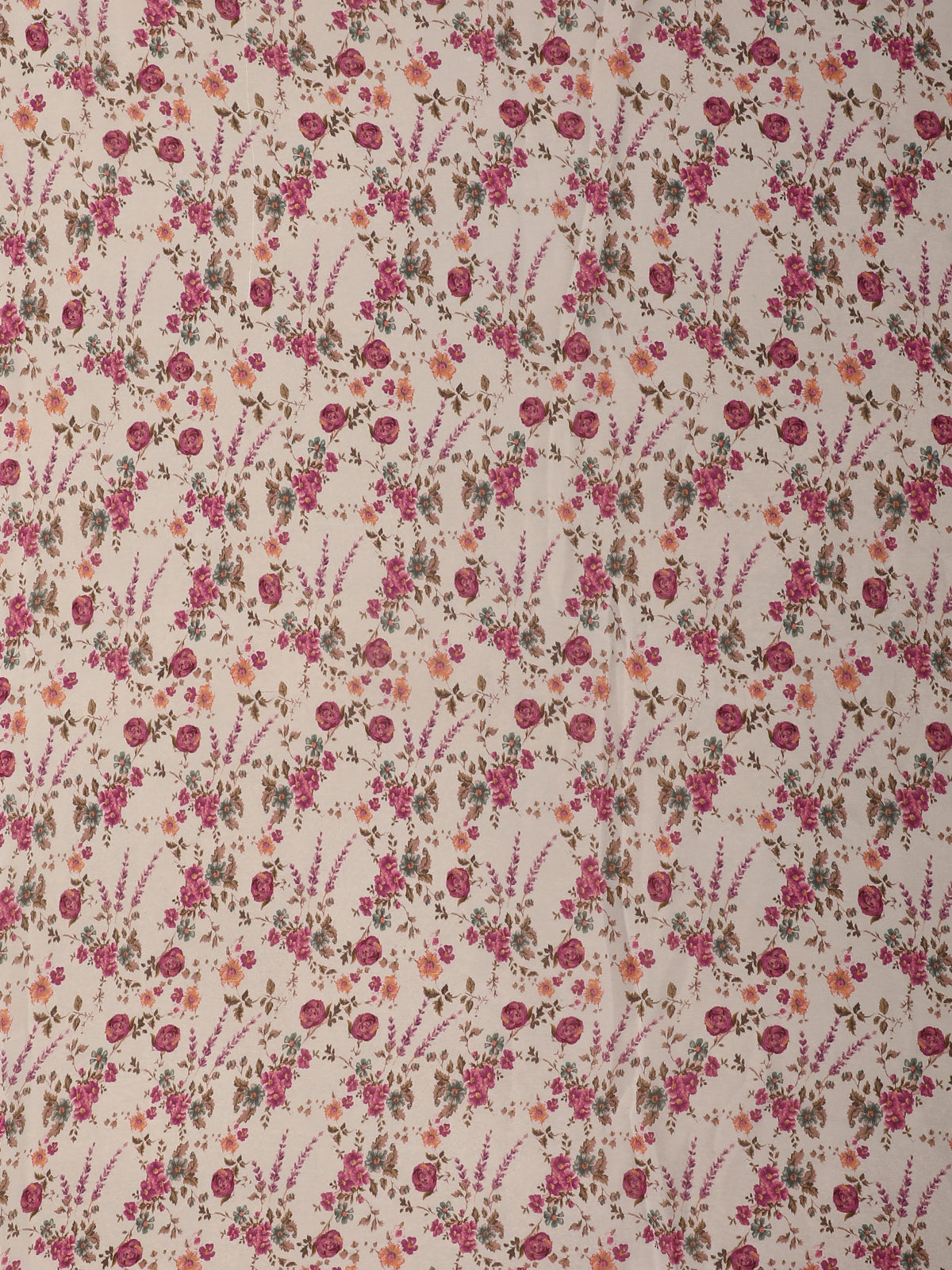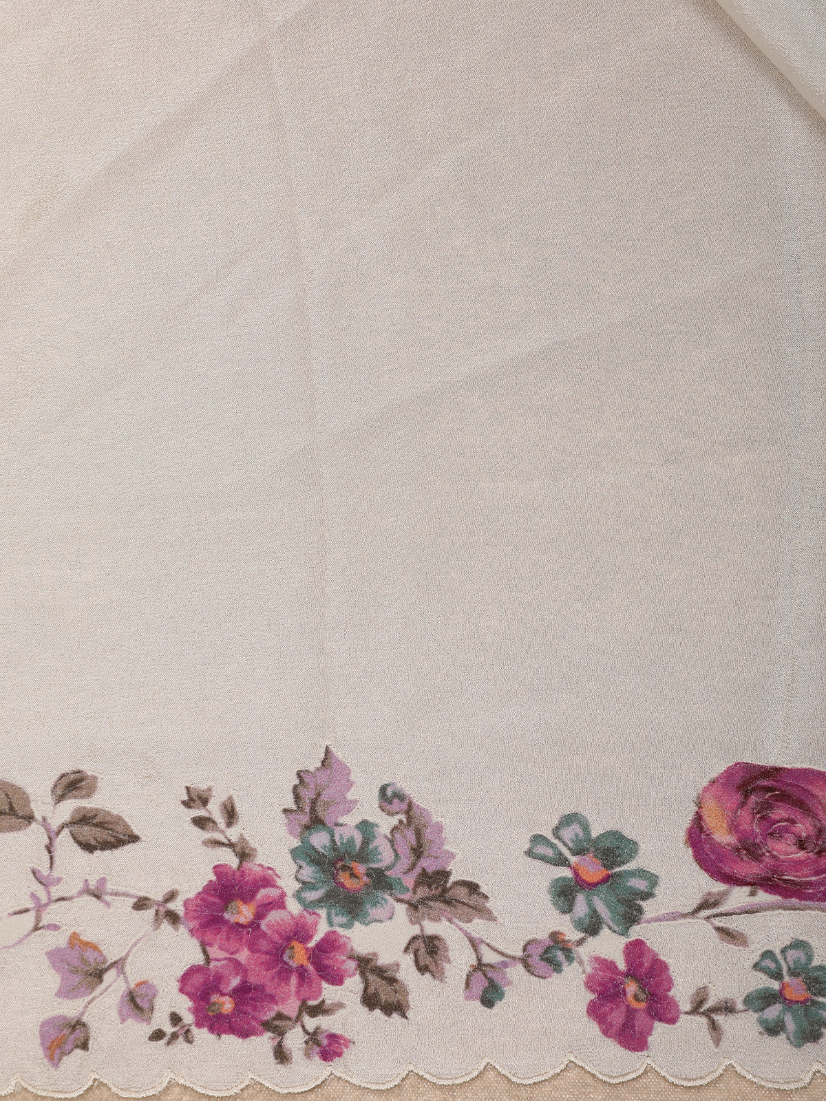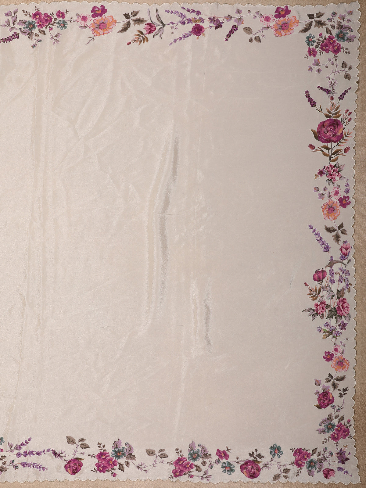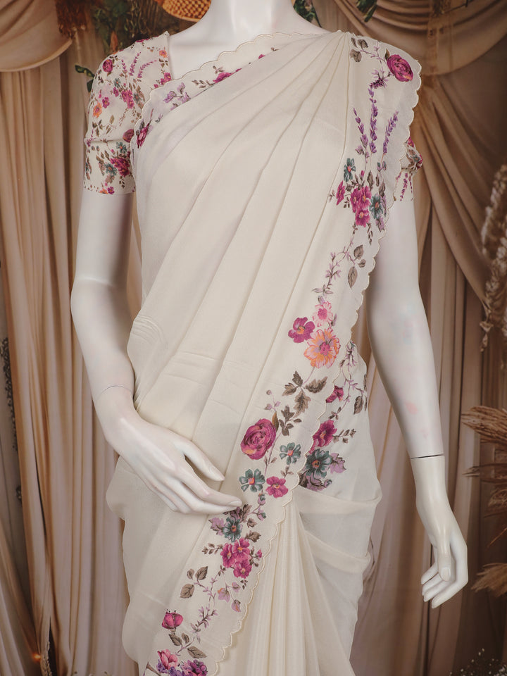 Ivory Floral Printed Chiffon Saree with Scallop Floral Border