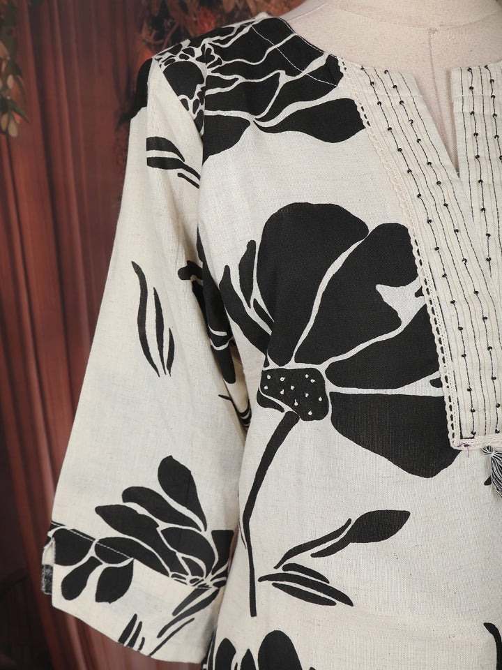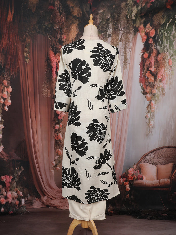 Ivory Floral Printed Cotton Salwar Suit