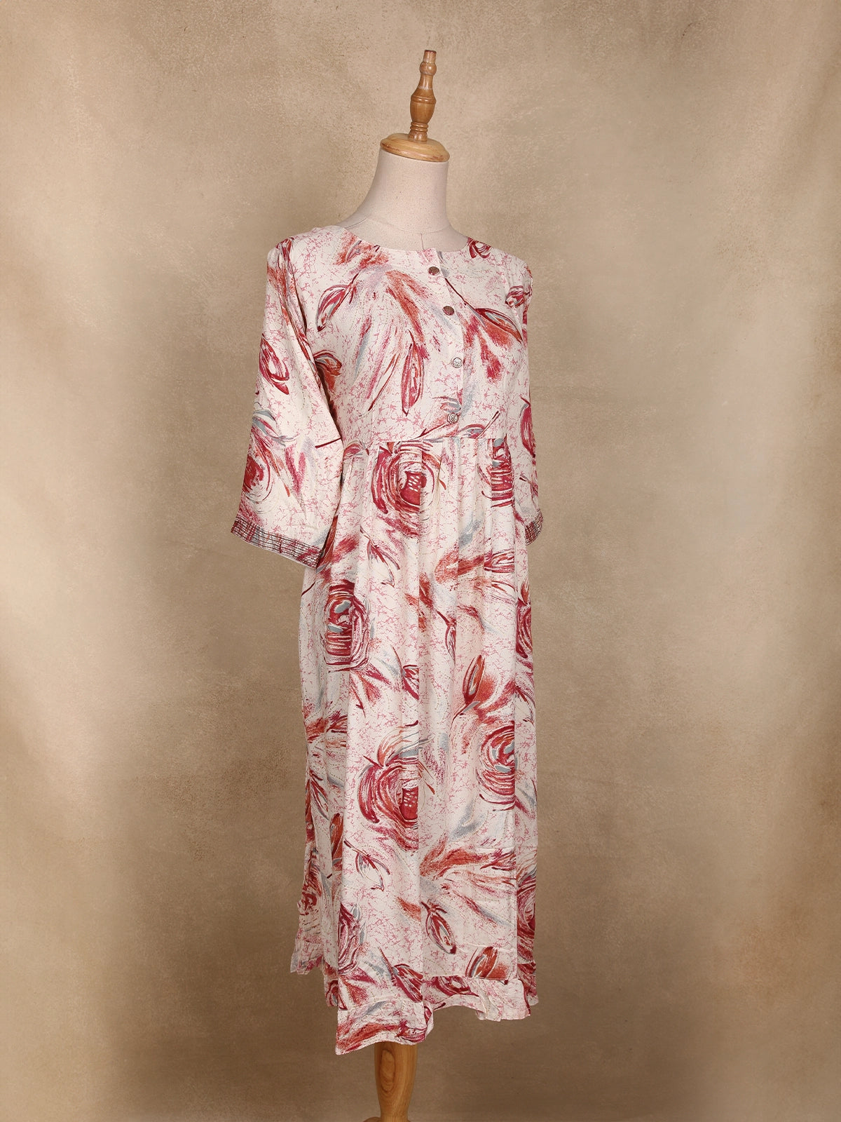 Brighten up your ethnic wardrobe with this Mustard Yellow Floral Embroidered Cotton Kurti, designed to bring a cheerful and graceful vibe to any occasion. Crafted from lightweight cotton fabric, this kurti ensures all-day comfort while maintaining an elegant look. The intricate white floral embroidery on the neckline and sleeves adds a touch of sophistication and traditional charm. The round neck with a button placket enhances its chic appeal, while the straight silhouette with side slits ensures ease of movement. Perfect for festive gatherings, casual events, or daywear, this kurti pairs beautifully with white leggings or palazzos for a radiant, elegant look.