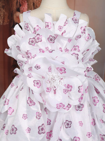 Ivory Floral Printed Design Shimmer Layered Party Wear Kids Frock
