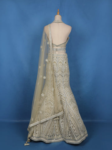 Ivory Floral Sequins Embroidered Mermaid Net Lehenga With Dupatta