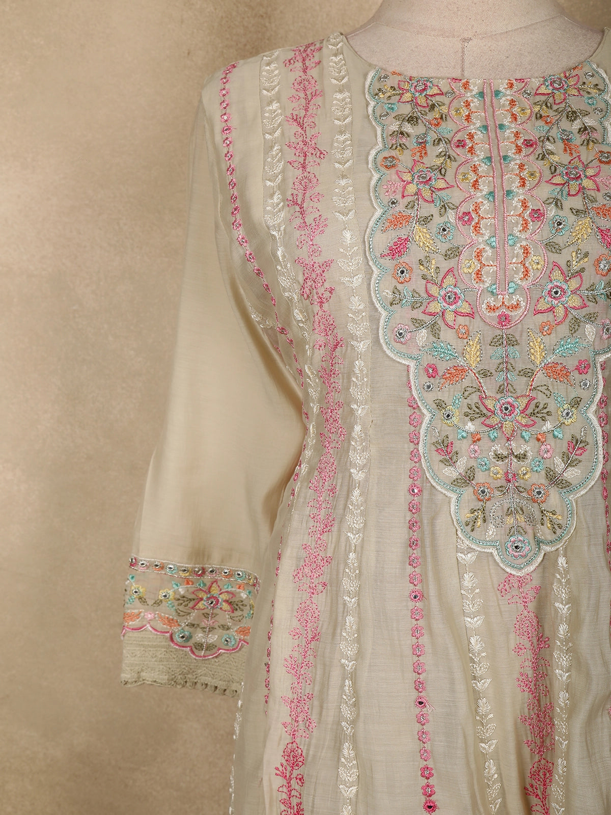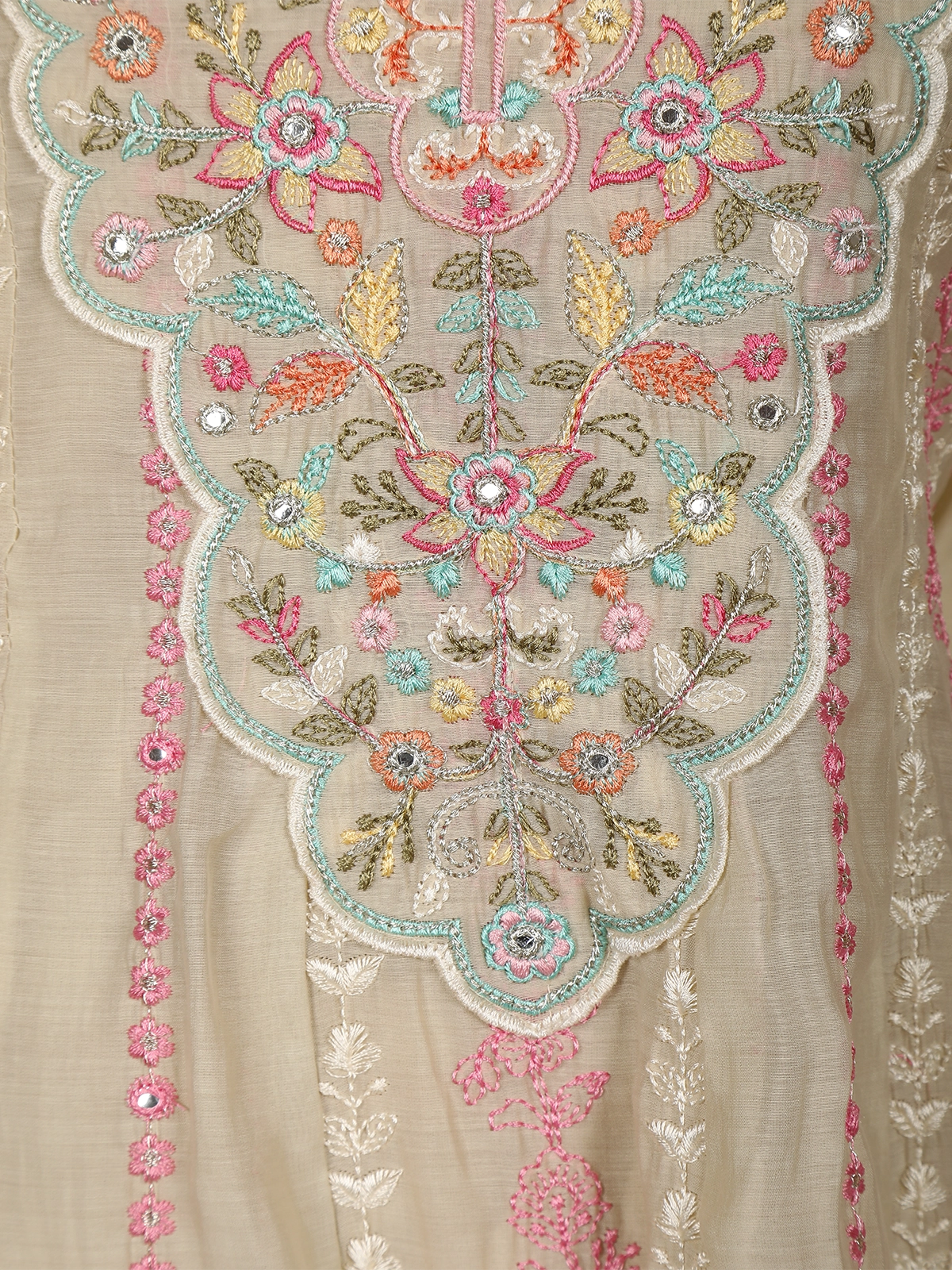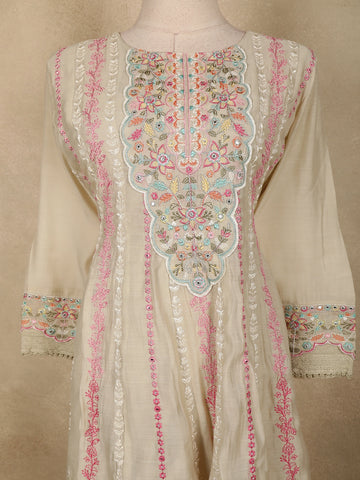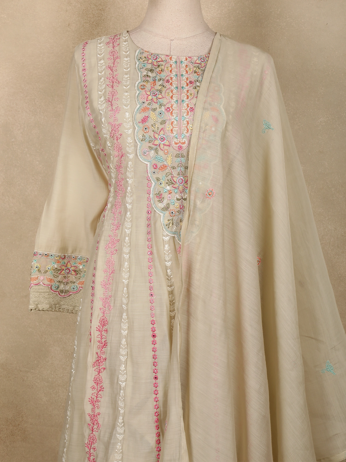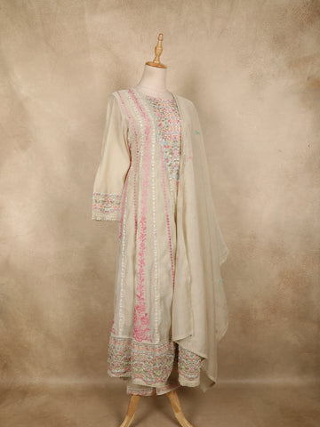 Ivory Floral Thread Embroidered Design Cotton Straight Cut Salwar Suit with Dupatta